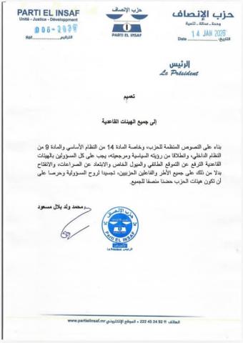 وأنا أغادر الإدارة العامة لميناء نواكشوط المستقل، وبعد تجربة هامة دامت سنتين ونصف، فإنني أتقدم بجزيل الشكر والامتنان والعرفان إلى فخامة رئيس الجمهورية على الثقة التي منحني والرعاية التي أحاط بها ميناء انواكشوط خلال هذه