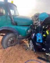 وبحسب شهود عيان فإن الحادث ناتج عن تصادم قوي بين شاحنة كبيرة وسيارة صغيرة من نوع تويوتا.