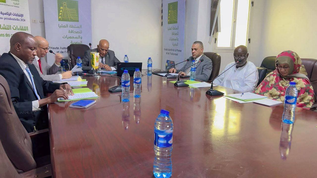 و في بداية الاجتماع رحب رئيس السلطة العليا بالنيابة السيد مدالله بلال بالمدير العام، وأحال الكلمة لمقرر الجلسة د.محمد ولد عابدين الذي استعرض الأطر المحددة لعمل السلطة العليا في مجال ضبط وسائل الإعلام، ثم قام بقراءة رسالة الأمين العام لوزارة الثقافة والفنون والاتصال والعلاقات مع البرلمان المحيلة لمحضر مجلس إدارة التلفزة الموريتانية في دورته الاستثنائية المنعقدة يوم 04 نوفمبر 2025 المطالبة بالمصادقة على مقترح تعيين المدير العام للتلفزة الموريتانية ش.م.