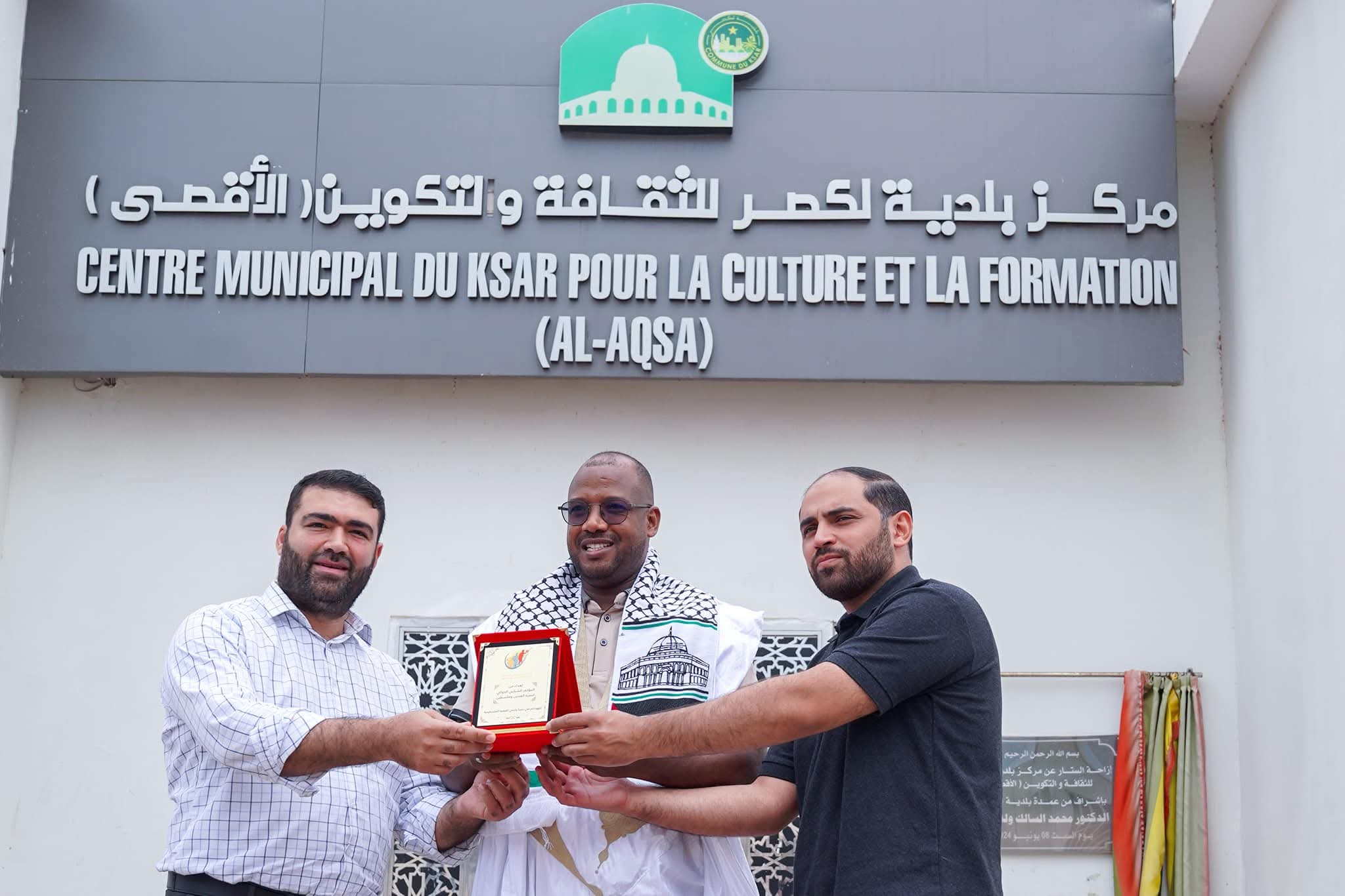 كرّم رئيس المؤتمر الشبابي الدولي لنصرة الأقصى وفلسطين السيد بشار زغموت، والمدير التنفيذي للائتلاف العالمي لنصرة القدس وفلسطين السيد يوسف عمر، اليوم، الدكتور محمد السالك ولد عُمار عمدة بلدية لكصر، وذلك على هامش يوم تكويني مكثف نظّمته المبادرة الطلابية للدفاع عن القضايا العادلة بمركز الأقصى ببلدية لكصر.