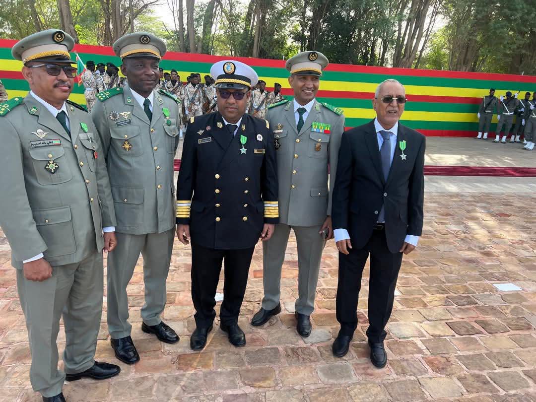 وشَّح فخامة رئيس الجمهورية، السيد محمد ولد الشيخ الغزواني، اليوم الجمعة 28 نوفمبر 2025 بنواكشوط، بمناسبة الاحتفال بالذكرى الخامسة والستين لعيد الاستقلال الوطني، القائدَ العام المساعد لخفر السواحل الموريتانية، العقيد البحري محمد سالم محمد الأمين حمزة.