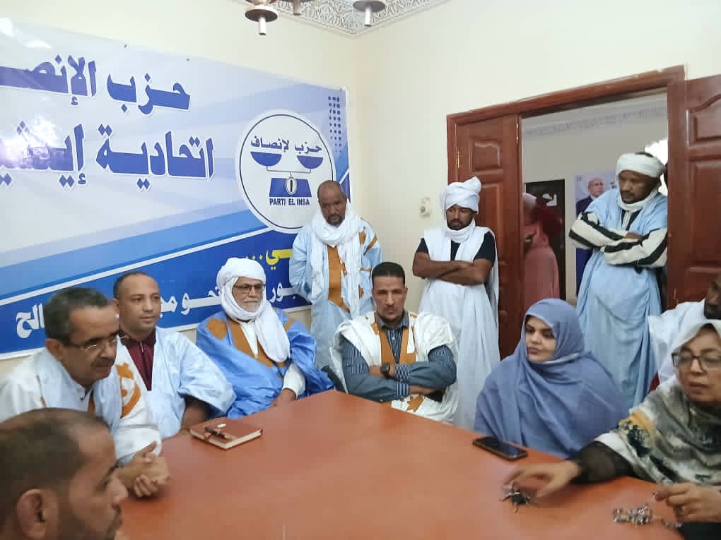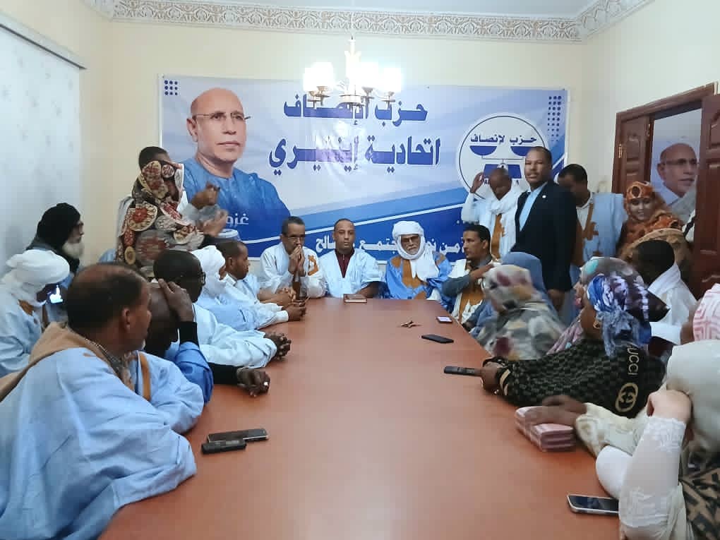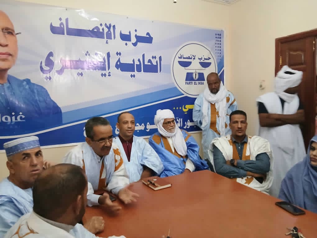 عقدت بعثة حزب الانصاف إلى مدينة اكجوجت اجتماعا تحسيسيا في مقر اتحادية الحزب بولاية انشيري؛ وذلك في إطار التحضير للزيارة المرتقبة التي سيؤديها رئيس الجمهورية السيد محمد ولد الشيخ الغزواني للمدينة غدا الخميس.
