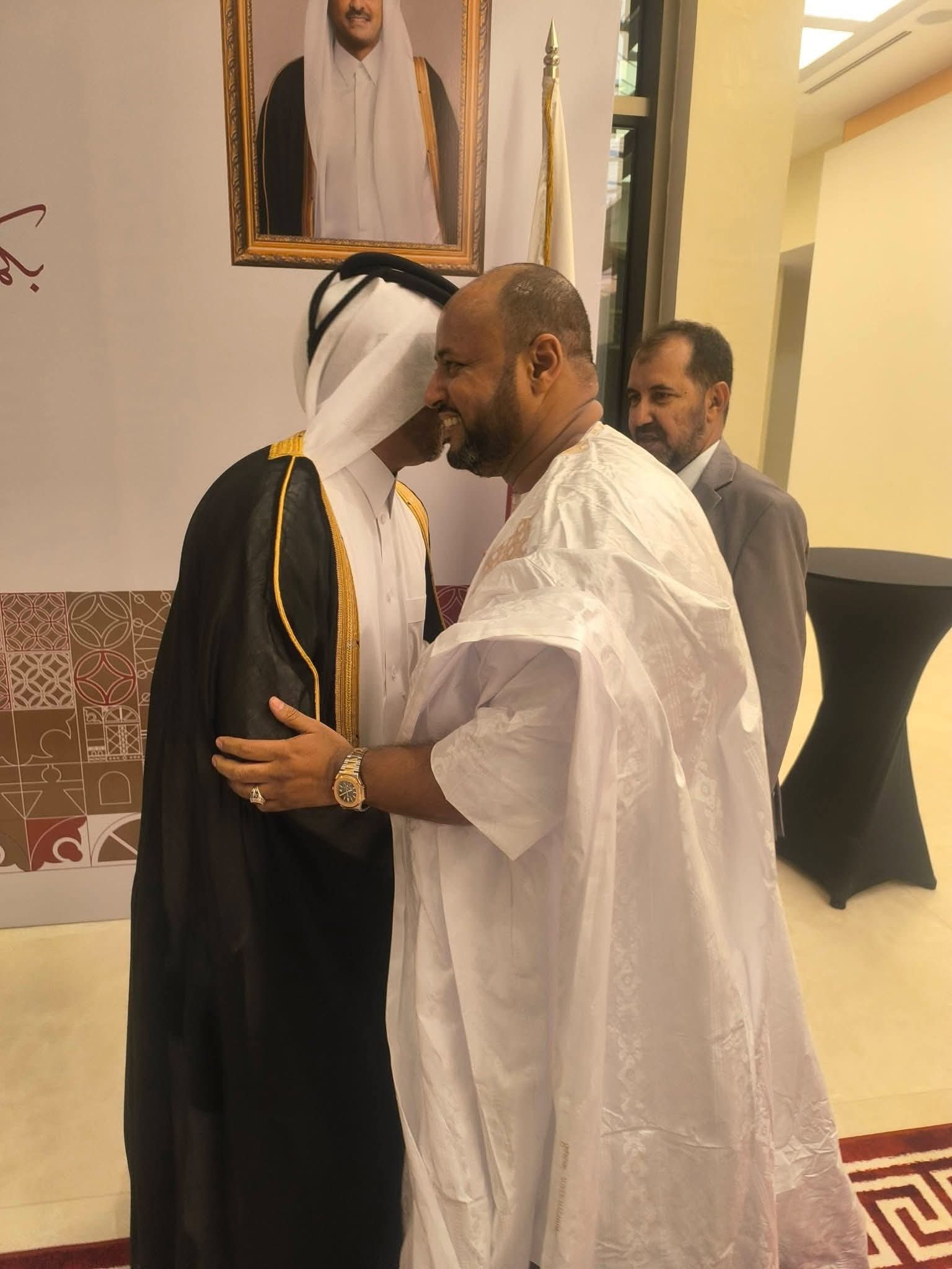 حضر الشيخ الطالب بوي ولد الشيخ آياه، رئيس جمعية الشيخ آياه الخيرية والناطق الرسمي باسم الخلافة العامة للطريقة القادرية في غرب إفريقيا، مساء أمس الثلاثاء الحفل المنظم من طرف سفارة دولة قطر بفندق شيراتون بالعاصمة نواكشوط بمناسبة اليوم الوطني القطري.
