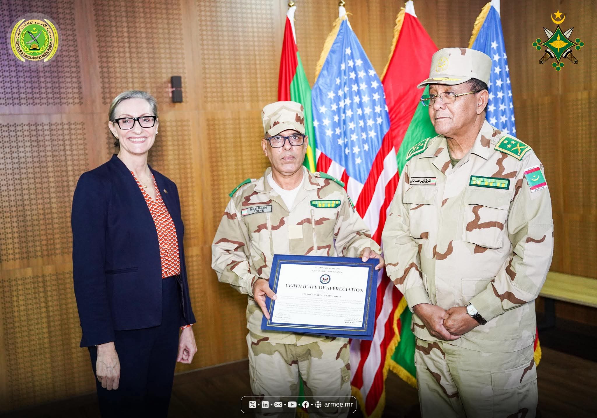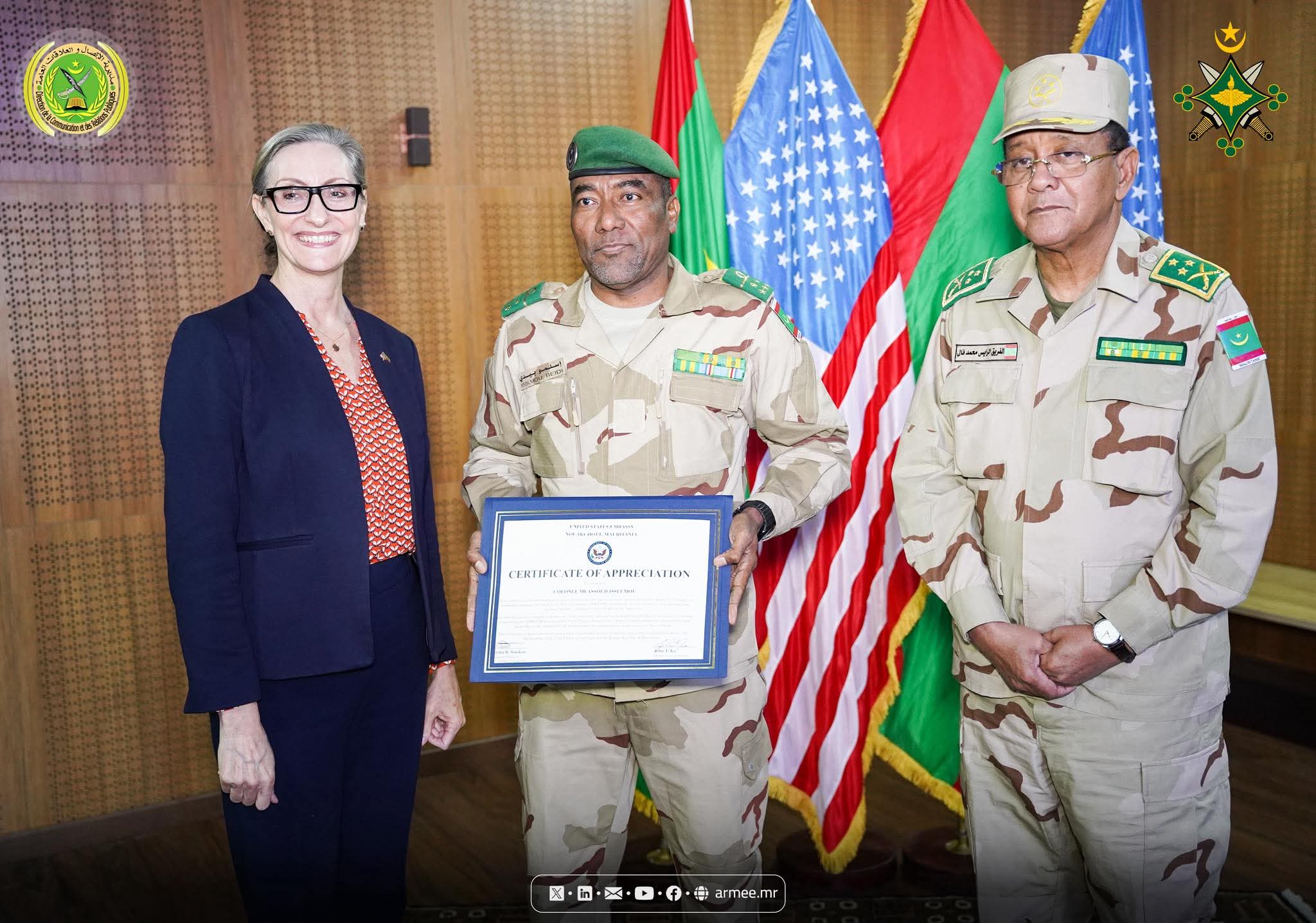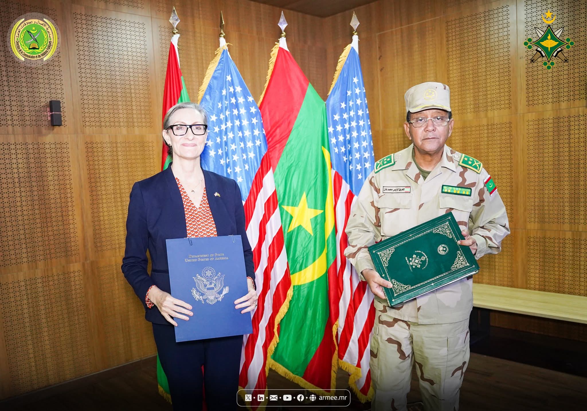 أشرف الفريق محمد فال الرايس الرايس قائد الأركان العامة للجيوش صباح اليوم الثلاثاء بمركز المؤتمرات بقيادة الأركان العامة للجيوش، على توقيع اتفاقية تسليم عتاد عسكري، مقدم من الولايات المتحدة الأمريكية لصالح بلادنا.