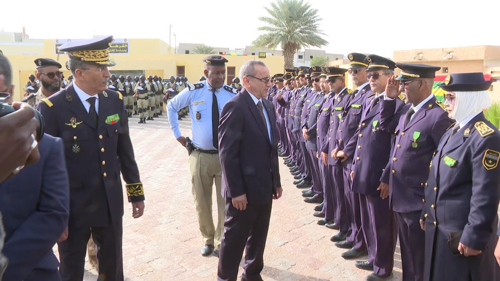 وقد بدأ الحفل بإستعراض معالي وزير الداخلية واللامركزية محمد احمد ولد محمد الأمين رفقة المدير العام للأمن الوطني الفريق محمد لحريطاني تشكيلات من الشرطة الوطنية أدت لهما تحية الشرف قبل أن يصافحا عددا من الضباط وضباط الصف والوكلاء.