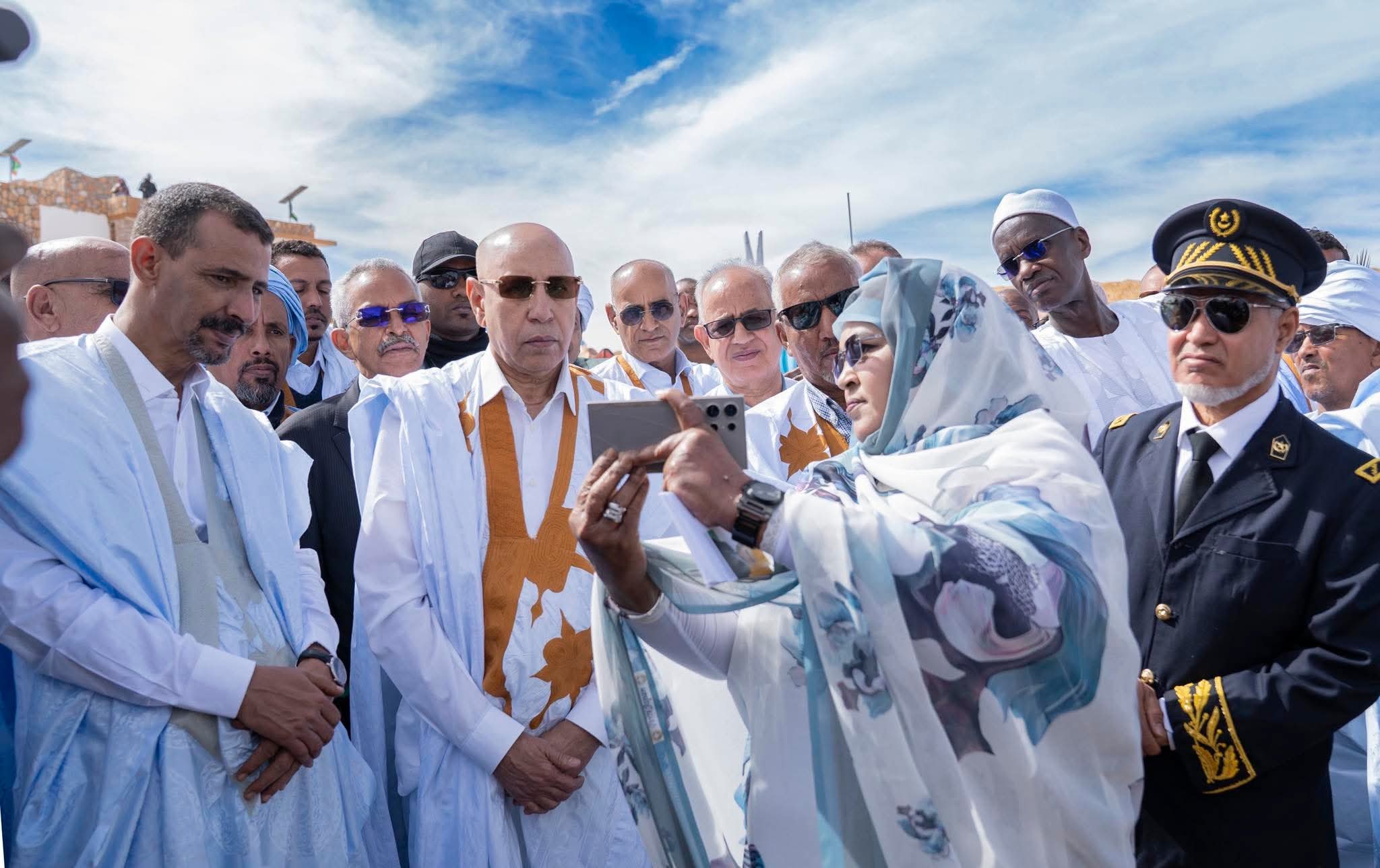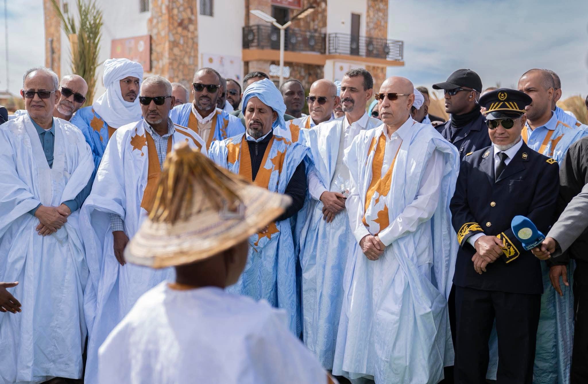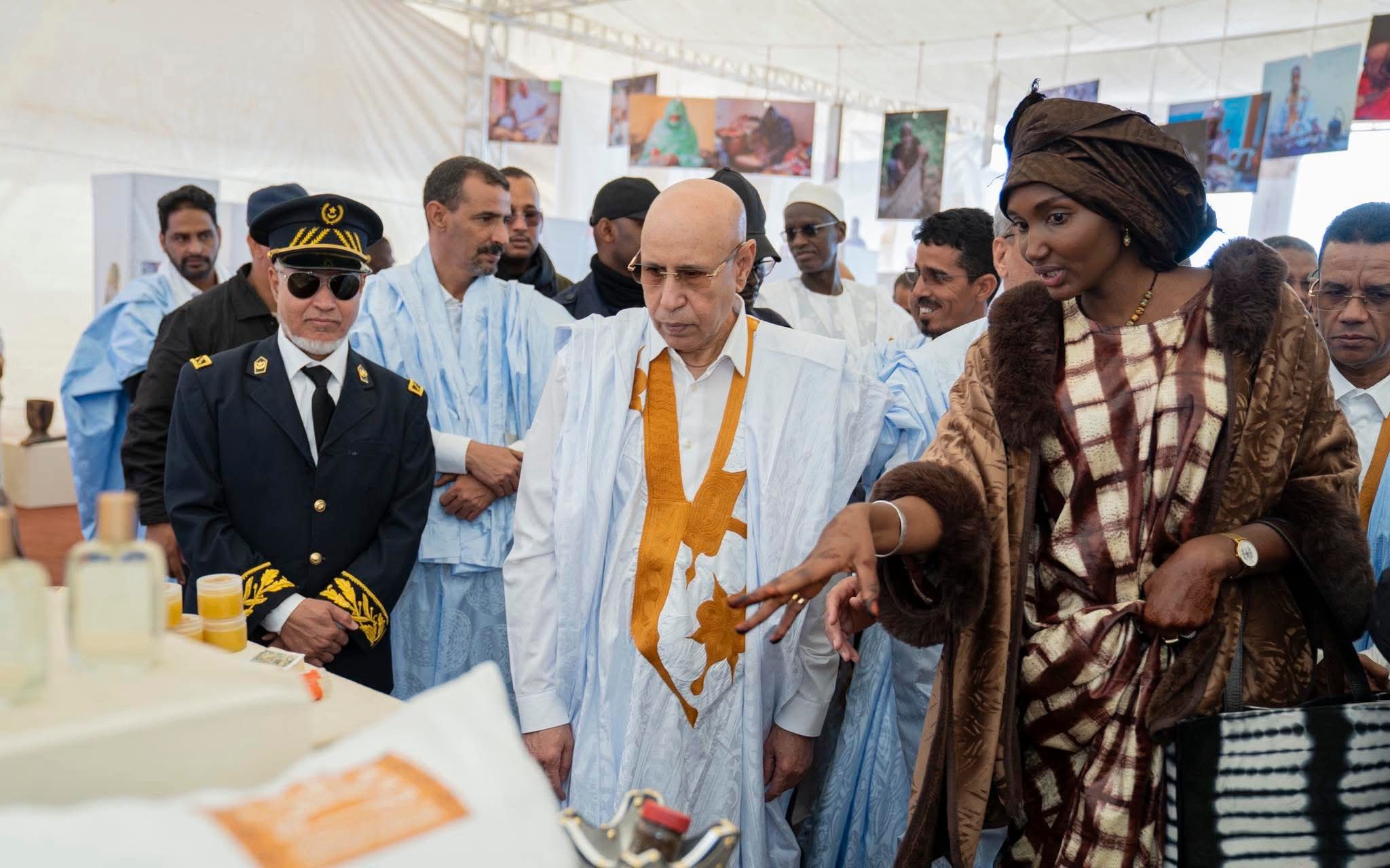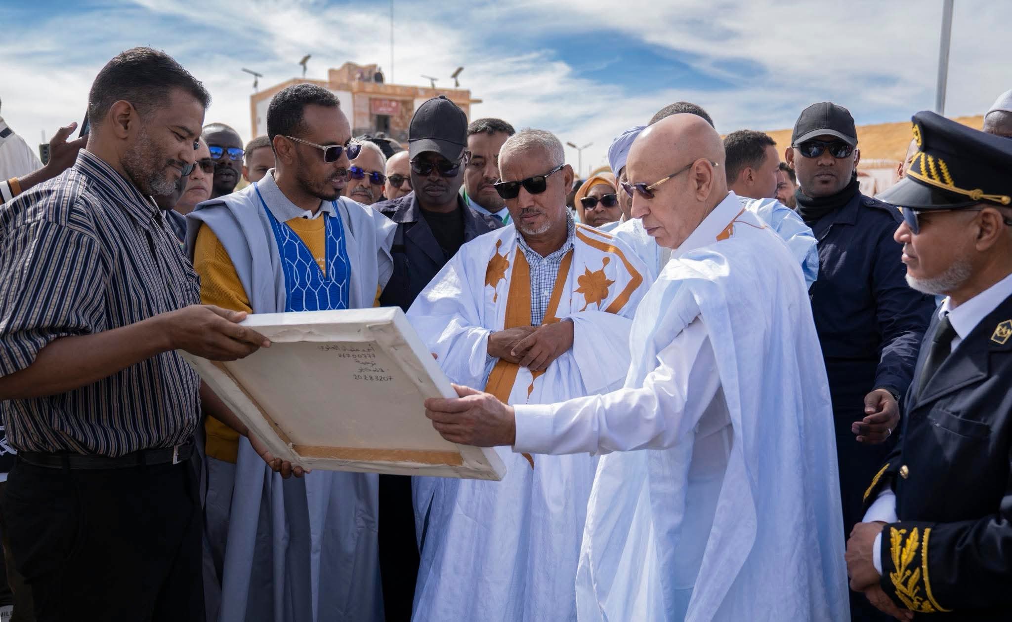 قص فخامة رئيس الجمهورية السيد محمد ولد الشيخ الغزواني؛ الشريط الرمزي؛ وأزاح الستار التذكاري إيذانًا بافتتاح القرية التراثية في مدينة وادان التاريخية؛ بولاية آدرار؛ شمال موريتانيا.