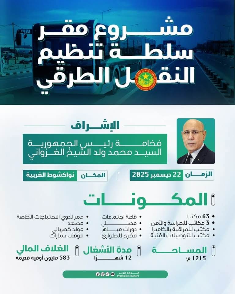 - تكلفة المشروع: 18,935,168.5 أوقية جديدة (شاملة ضريبة القيمة المضافة)