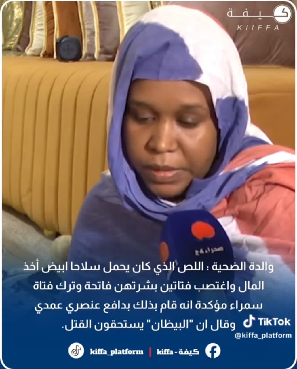 بعدما اخذ المال و الأغراض الهامة و أغتصب فتاتين بشرتهن فاتحة بدافع عنصري مقيت و هو يردد كلمات تنم عن الحقد الدفين إتجاه مجتمع البيظان ،