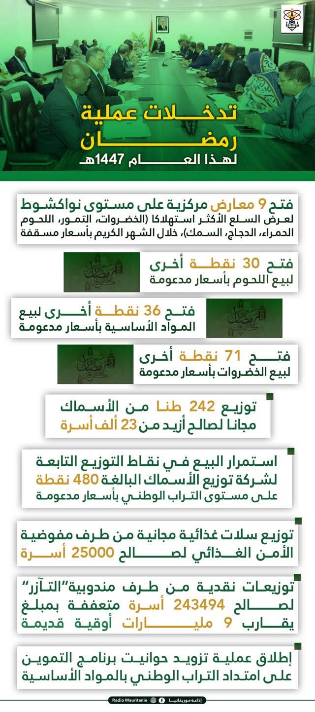 ويأتي هذا الاجتماع تنفيذا لتعليمات فخامة رئيس الجمهورية، السيد محمد ولد الشيخ الغزواني، القاضية باتخاذ الإجراءات الضرورية لتمكين المواطنين من صيام شهر رمضان الكريم في ظروف مناسبة.