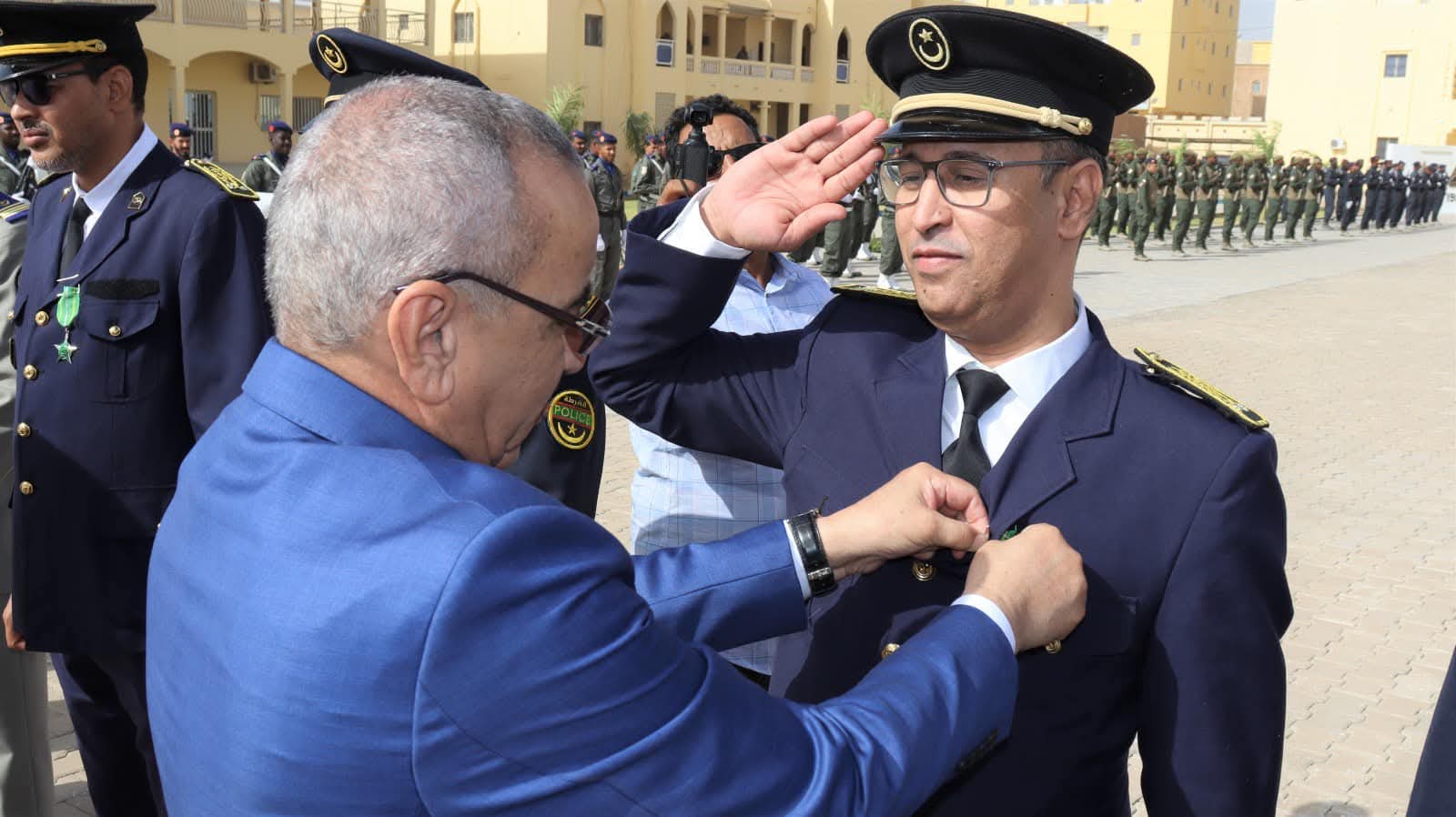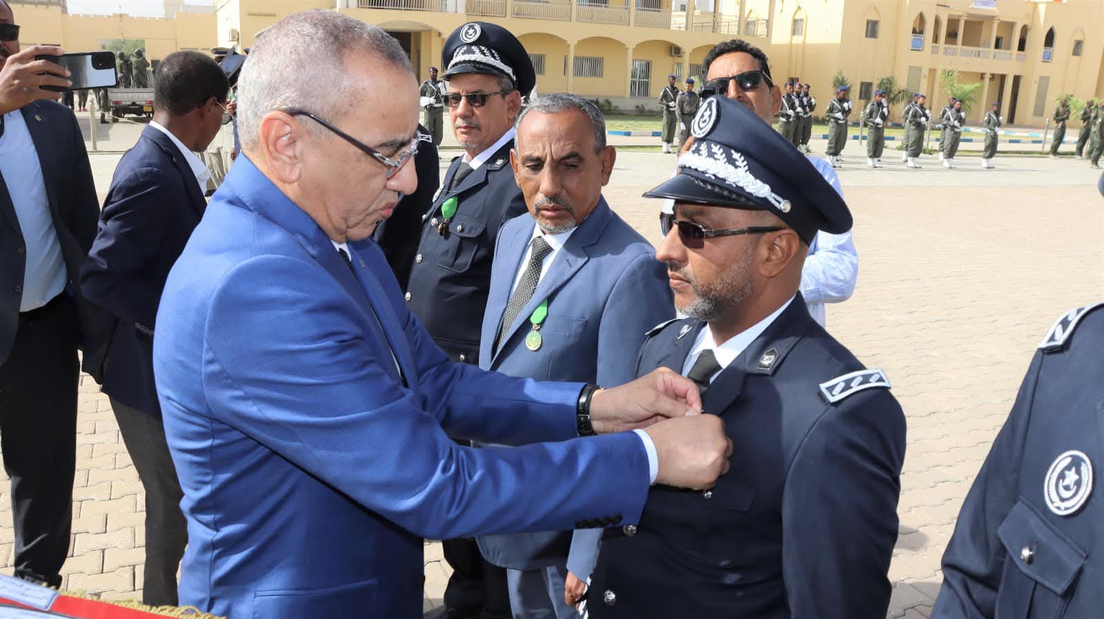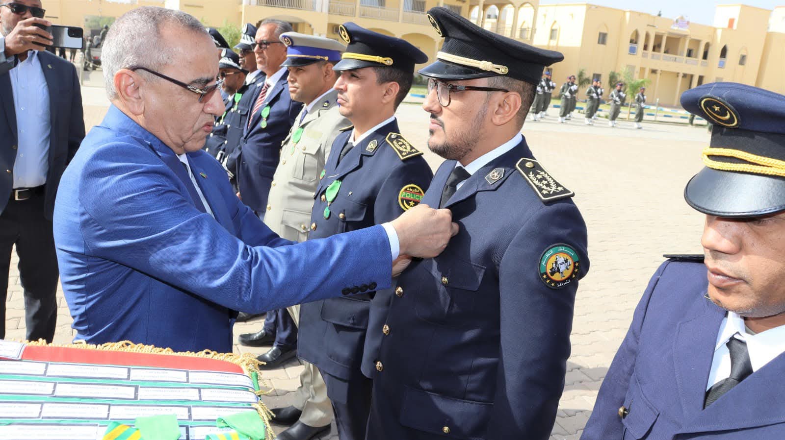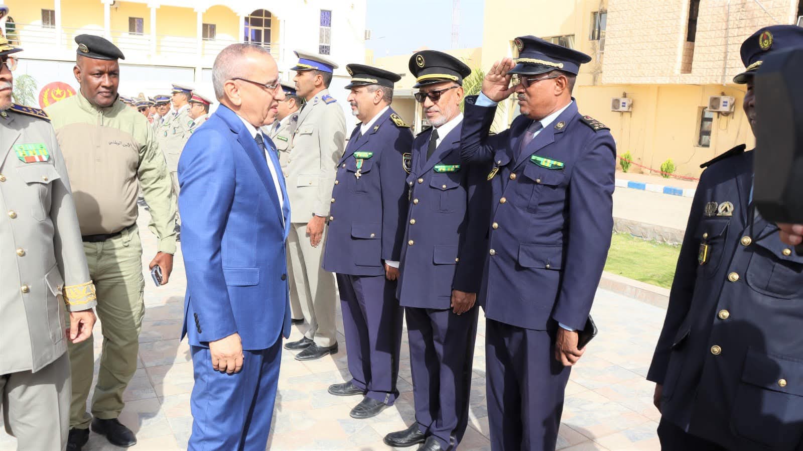 و استعرض معالي الوزير خلال الحفل الذي أقيم بالمناسبة و بحضور قائد أركان الحرس الوطني الفريق إبراهيم فال ولد الشيباني، تشكيلات من الحرس الوطني والشرطة الوطنية والمندوبية العامة للأمن المدني وتسيير الأزمات أدت لهما تحية الشرف قبل أن يحيي معالي الوزير عددا من قادة المكاتب والمديريات بقيادة أركان الحرس الوطني والإدارة العامة للأمن الوطني والمندوبية العامة للأمن المدني وتسيير الأزمات والمسؤولين المركزيين بوزارة الداخلية وترقية اللامركزية والتنمية المحلية.