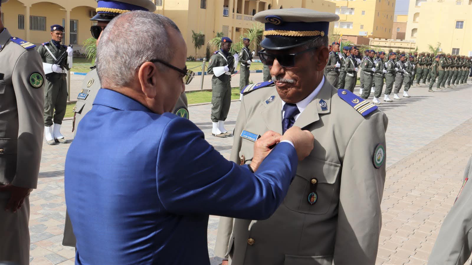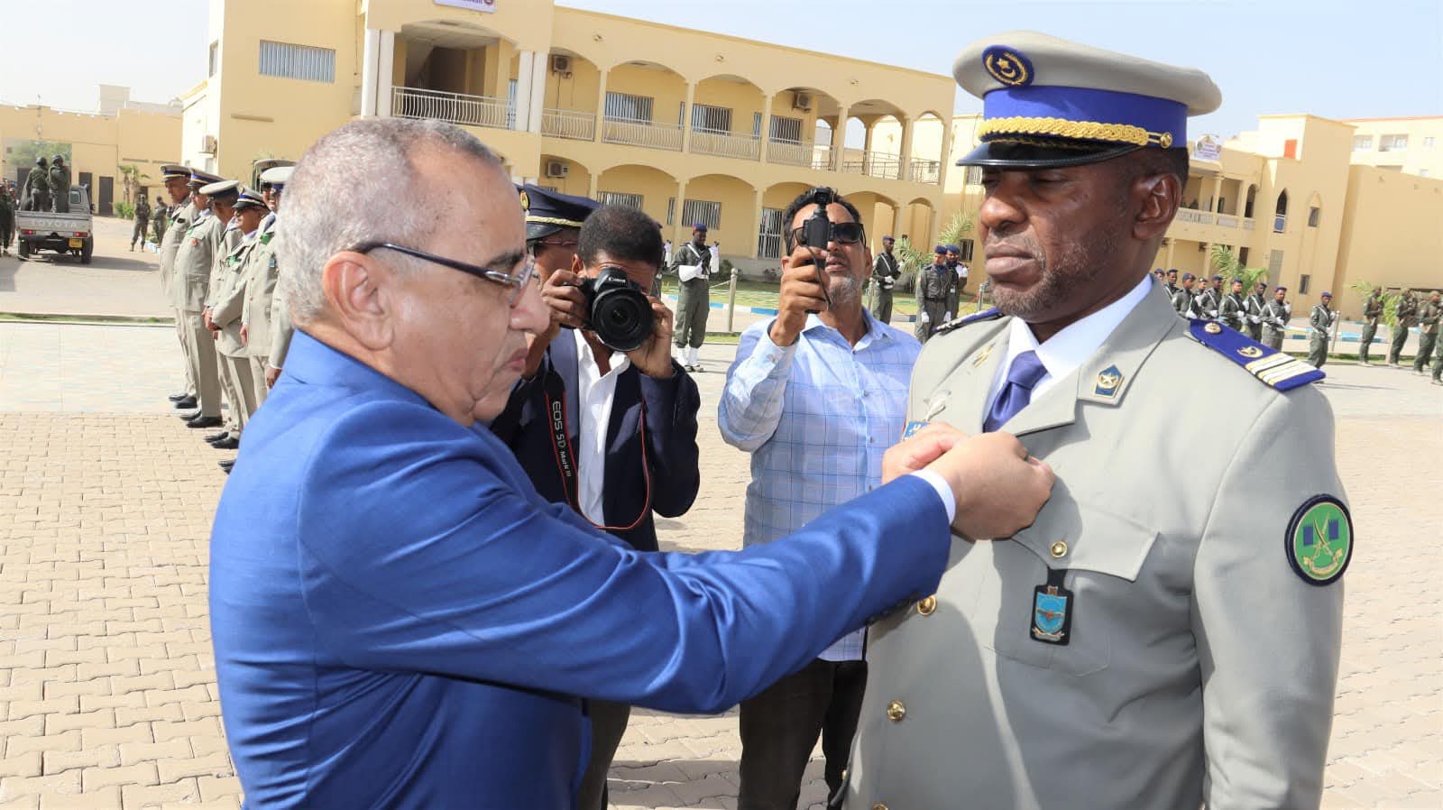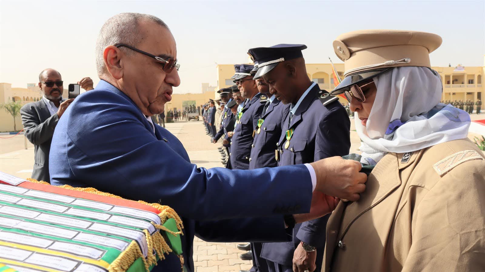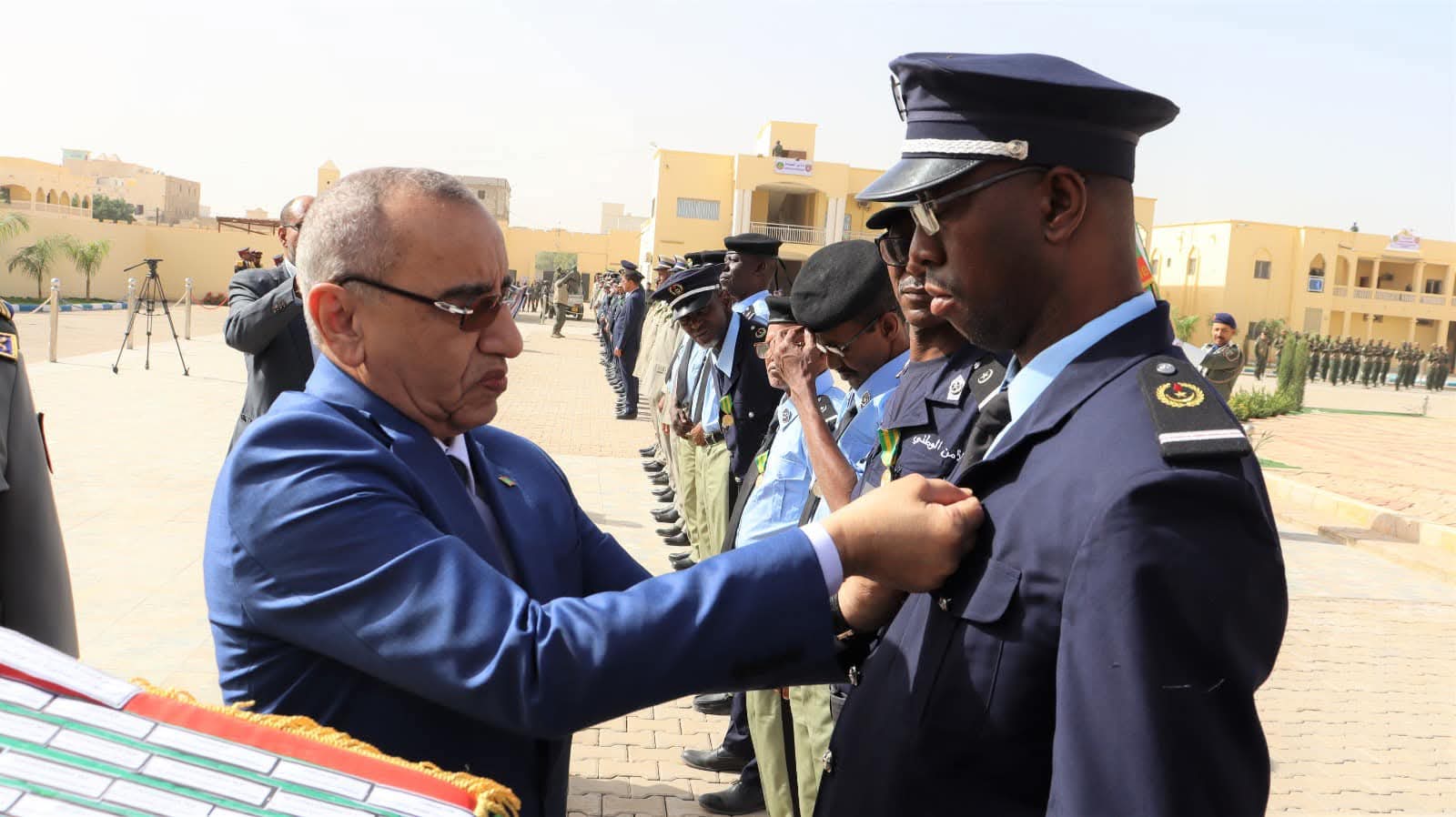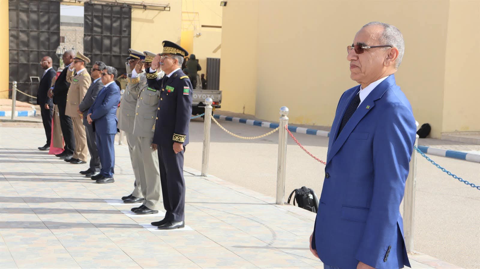 و استعرض معالي الوزير خلال الحفل الذي أقيم بالمناسبة و بحضور قائد أركان الحرس الوطني الفريق إبراهيم فال ولد الشيباني، تشكيلات من الحرس الوطني والشرطة الوطنية والمندوبية العامة للأمن المدني وتسيير الأزمات أدت لهما تحية الشرف قبل أن يحيي معالي الوزير عددا من قادة المكاتب والمديريات بقيادة أركان الحرس الوطني والإدارة العامة للأمن الوطني والمندوبية العامة للأمن المدني وتسيير الأزمات والمسؤولين المركزيين بوزارة الداخلية وترقية اللامركزية والتنمية المحلية.
