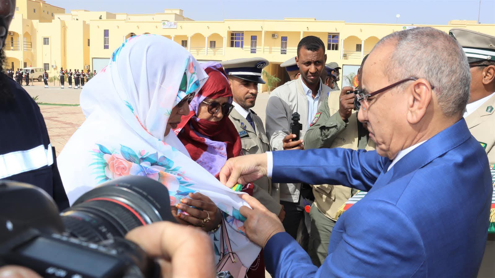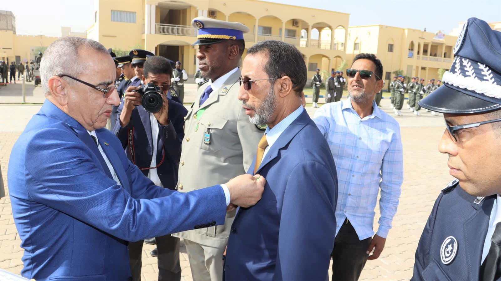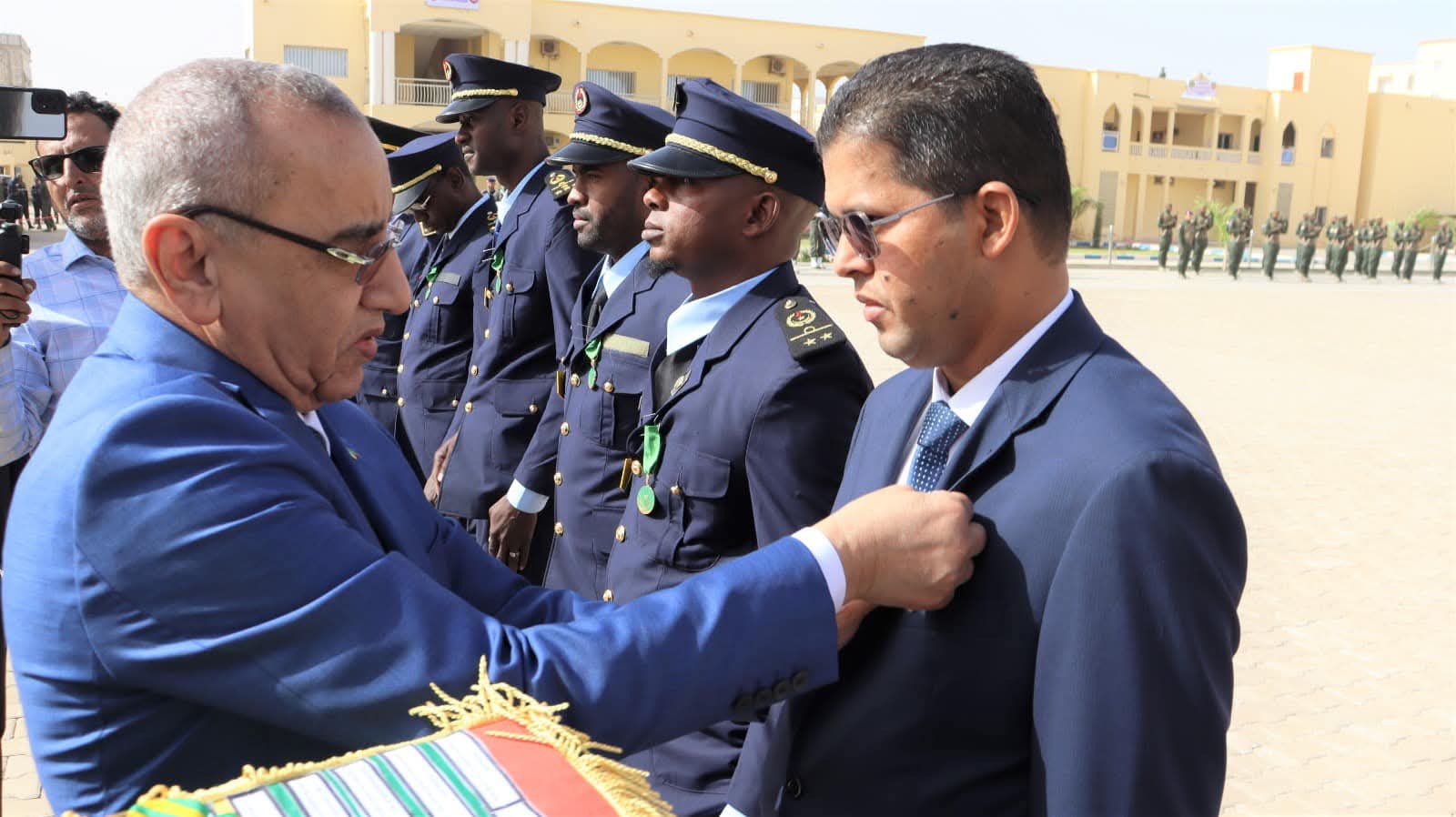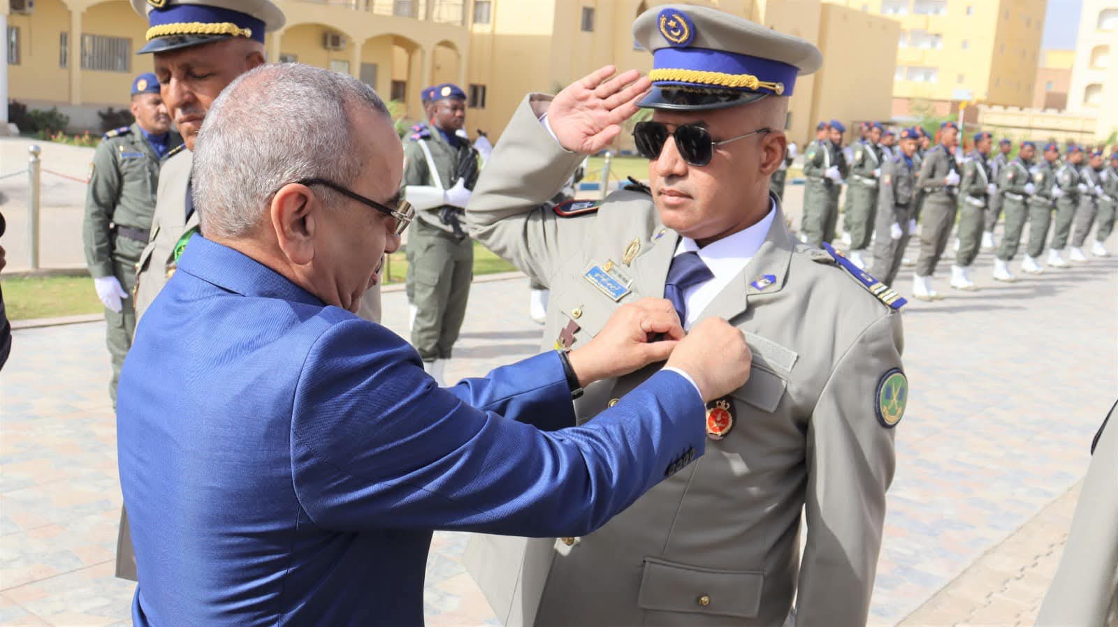 و استعرض معالي الوزير خلال الحفل الذي أقيم بالمناسبة و بحضور قائد أركان الحرس الوطني الفريق إبراهيم فال ولد الشيباني، تشكيلات من الحرس الوطني والشرطة الوطنية والمندوبية العامة للأمن المدني وتسيير الأزمات أدت لهما تحية الشرف قبل أن يحيي معالي الوزير عددا من قادة المكاتب والمديريات بقيادة أركان الحرس الوطني والإدارة العامة للأمن الوطني والمندوبية العامة للأمن المدني وتسيير الأزمات والمسؤولين المركزيين بوزارة الداخلية وترقية اللامركزية والتنمية المحلية.