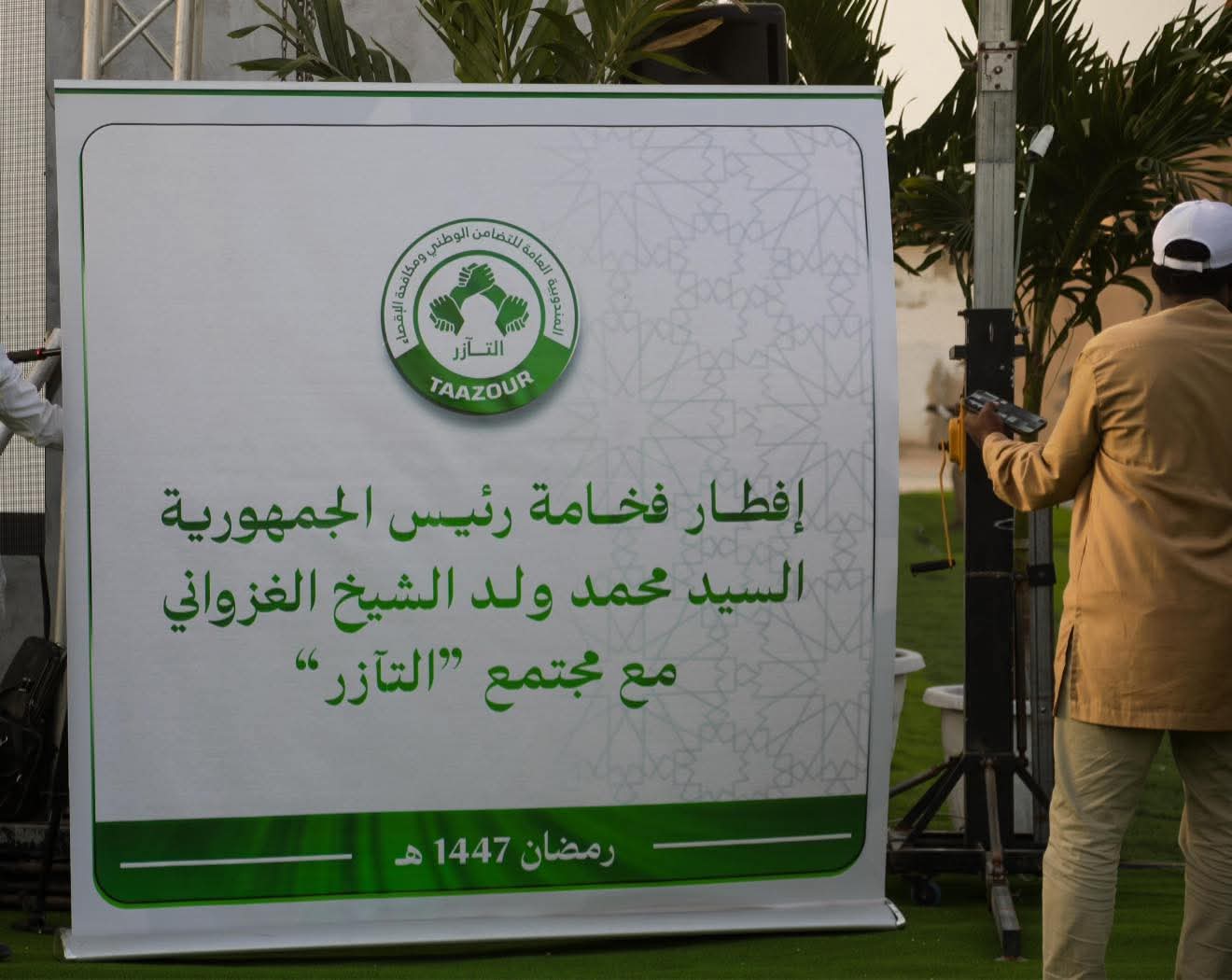 أقام فخامة رئيس الجمهورية، السيد محمد ولد الشيخ الغزواني، مساء اليوم بمقر المندوبية العامة للتضامن الوطني ومكافحة الإقصاء «التآزر» في نواكشوط، إفطارًا على شرف 100 ممثل عن مجتمع «التآزر» قدموا من جميع ولايات الوطن.