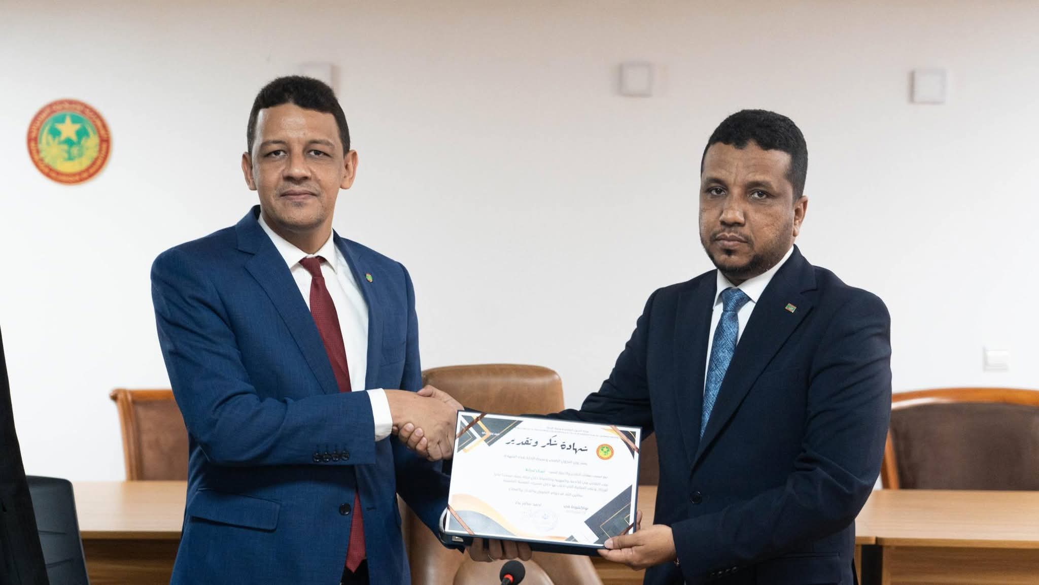 أشرف معالي وزير التحول الرقمي وعصرنة الإدارة، السيد أحمد سالم بده، صباح اليوم، على مراسم تكريم المسدد بالوزارة أبوبكر لمرابط، وذلك بمناسبة انتهاء مهامه في الوزارة.