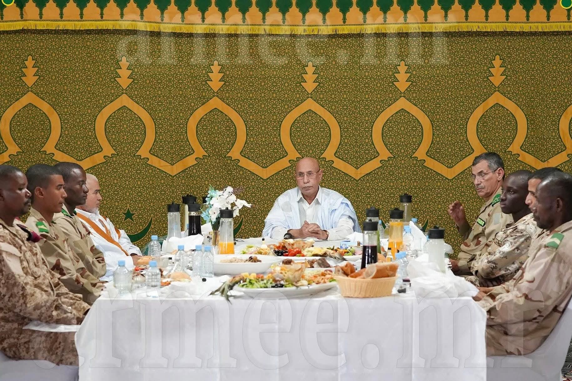 شارك فخامة رئيس الجمهورية، القائد الأعلى للقوات المسلحة، السيد محمد ولد الشيخ الغزواني القوات المسلحة وقوات الأمن إفطارهم الرمضاني بحامية أطار.