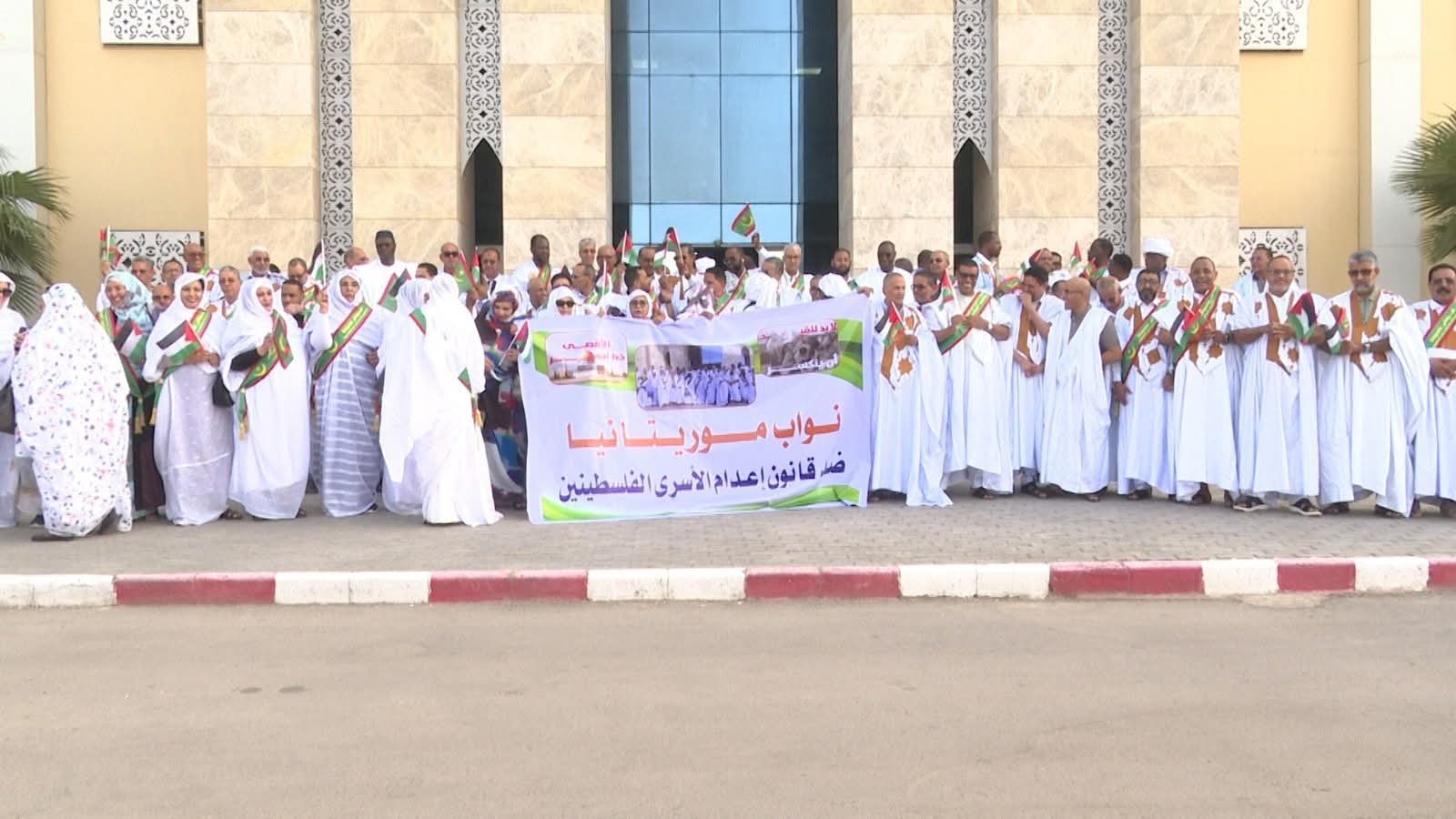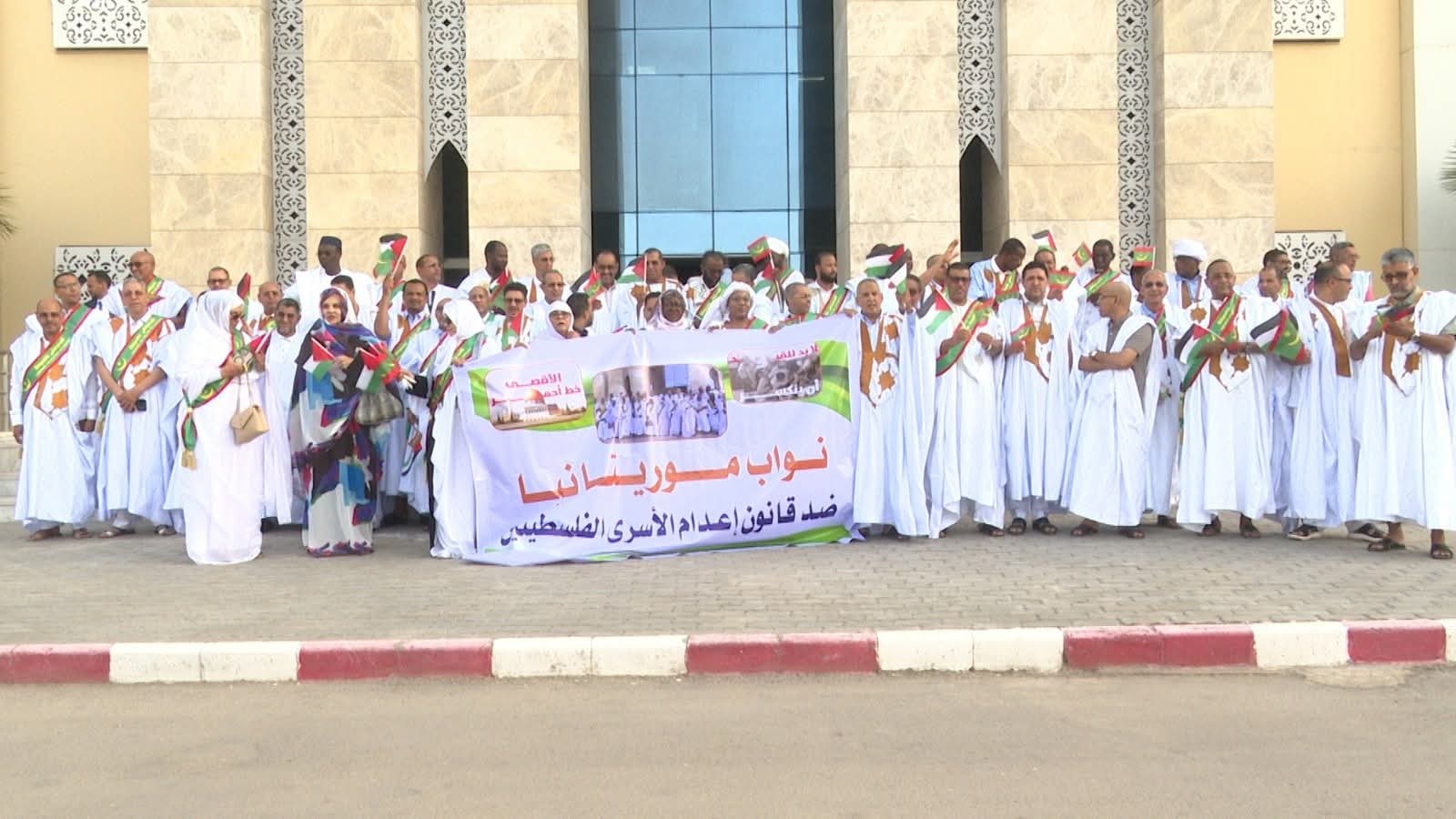 نظم أعضاء الجمعية الوطنية (البرلمان الموريتاني) مساء اليوم الأربعاء وقفة احتجاجية أمام مقر البرلمان في نواكشوط للتنديد بالقانون الذي أقره الكنيست الإسرائيلي والقاضي بإعدام الأسرى الفلسطينيين.
