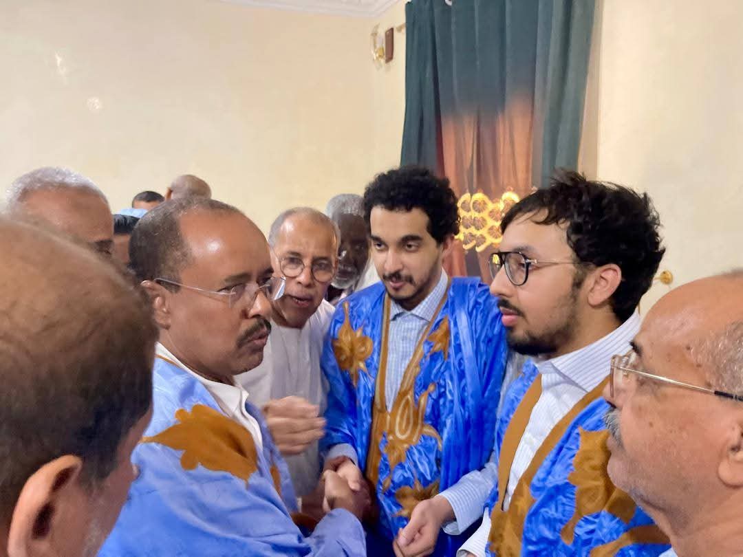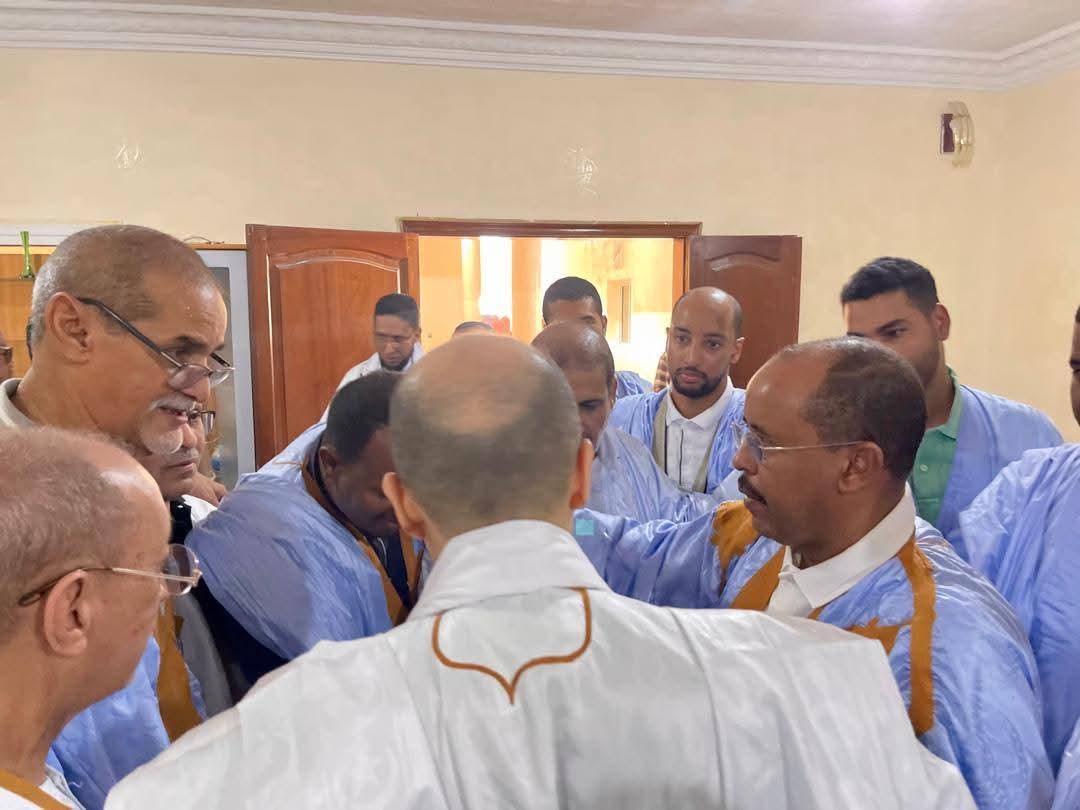 قدّم وفد منتدب من طرف فضيلة الخليفة العام للطريقة القادرية في غرب أفريقيا: الشيخ عبد العزيز بن الشيخ آياه ظهر اليوم الجمعة واجب العزاء في وفاة المغفور لها بإذن الله تعالى؛ السيدة: عائشة بنت أحمد الطلبه، حرم الرئيس السابق معاوية ولد الطايع
