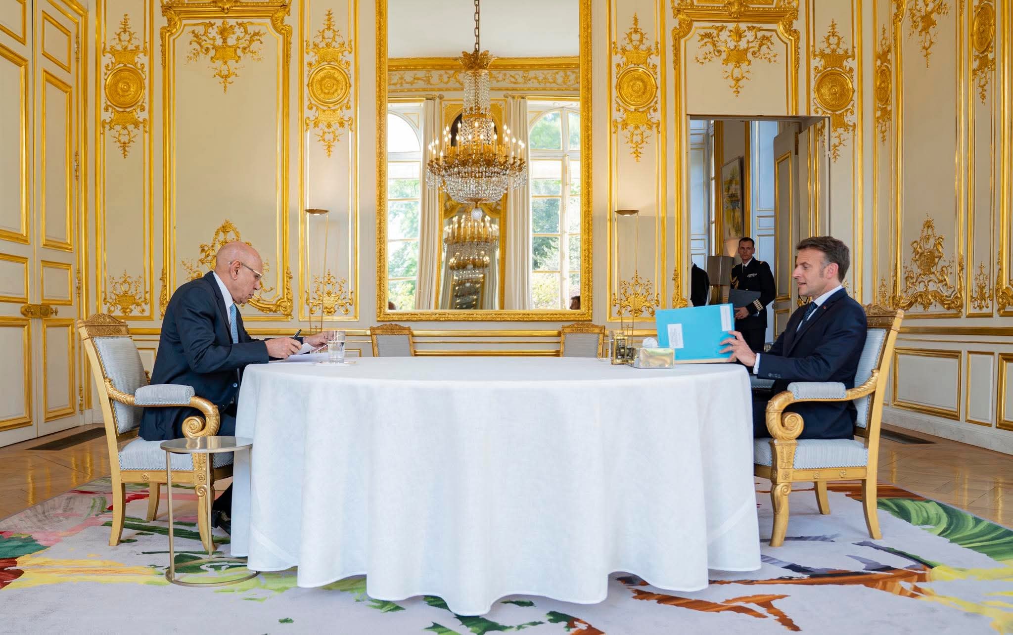 حضر فخامة رئيس الجمهورية السيد محمد ولد الشيخ الغزواني إلى جانب السيدة الأولى الدكتورة مريم محمد فاضل الداه؛ مأدبة عشاء رسمية أقامها على شرفهما في قصر الإليزيه، الرئيس الفرنسي السيد إيمانويل ماكرون، والسيدة الأولى بريجيت ماكرون.