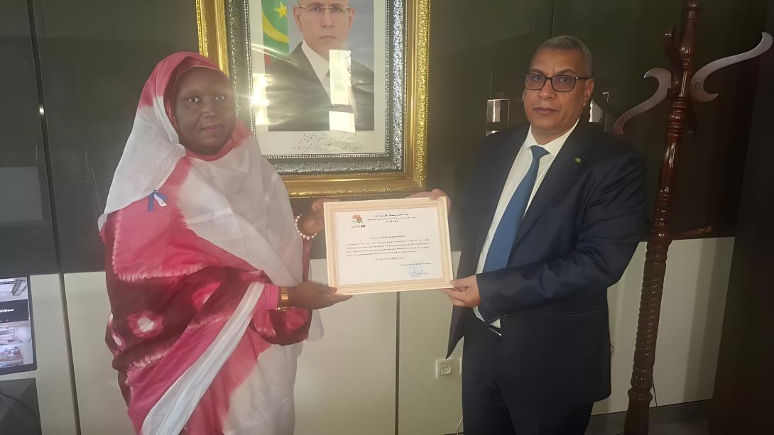 استلم المدير العام لإذاعة موريتانيا، السيد محمد عبد القادر ولد العلادة، شهادة تقدير من الفرع الموريتاني للاتحاد الإفريقي للصحفيين في الصحافة الحرة (UJPLA)، وذلك بحضور السيدة ماريا لادجي تراوري، الأمينة العامة الدولية ورئيسة فرع الاتحاد في موريتانيا.