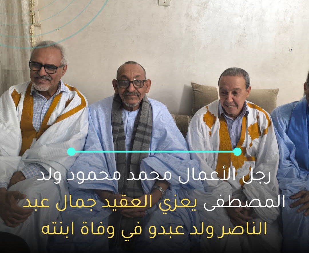 قدّم رجل الأعمال محمد محمود ولد المصطفى الليلة، تعازيه الخالصة إلى العقيد جمال عبد الناصر ولد عبدو، مدير التشريع بالجمارك، إثر وفاة كريمته توت التي توفيت أول أمس.