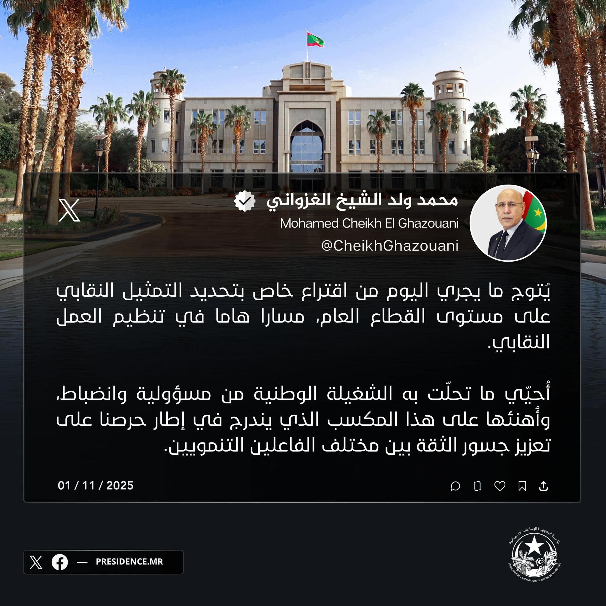 دعا السفير الموريتانى بتركيا سيد أحمد البكاي ولد سيدي بيه أنصاره للمشاركة في تعبئة واسعة وتحسيس على نطاق أوسع وتشمل للمشاركة الفعالة بكثافة فى الاستقبال المقرر تنظيمها يوم السادس من نوفمبر 2025 لرئيس الجمهورية محمد ولد الشيخ الغزوانى.