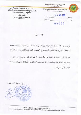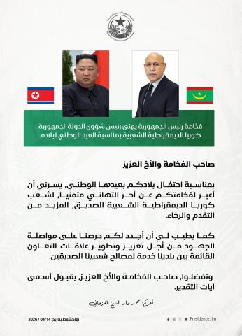 أعلنت رئاسة الجمهورية أنه، بموجب مرسوم صادر اليوم، تم تعيين الفريق محمد محمد سالم لحريطاني مديرا عاما للأمن الوطني.