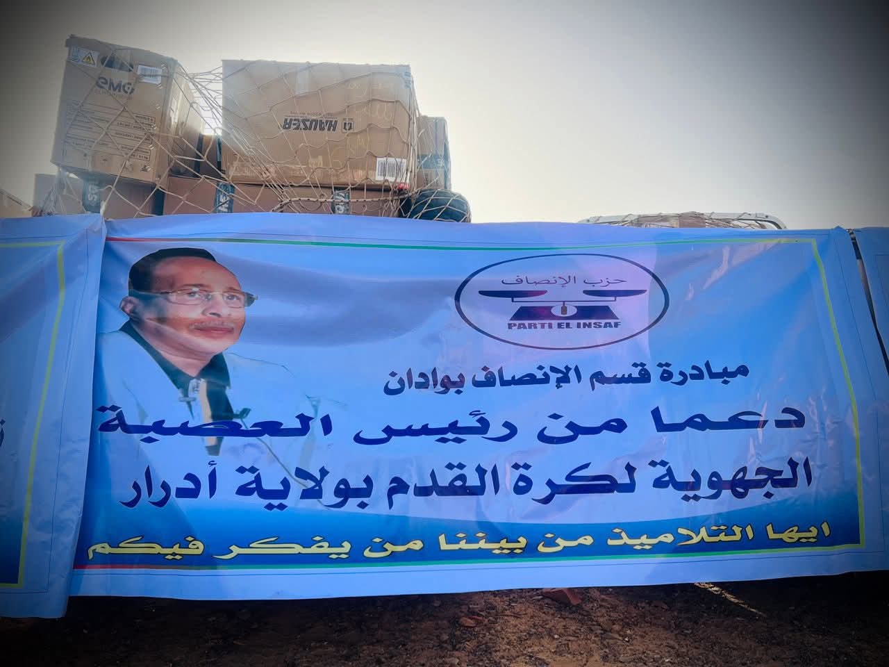 أطلق رجل الأعمال ورئيس العصبة الجهوية لكرة القدم بآدرار، السيد عبد الله ولد احمياده، مبادرة خاصة تتمثل في توزيع الزي المدرسي والحقائب المدرسية وذلك تجسيدا للدور الاجتماعي والتربوي لكرة القدم، ودعماً للمدرسة الجمهورية التي أطلقها فخامة رئيس الجمهورية السيد محمد ولد الشيخ الغزواني.