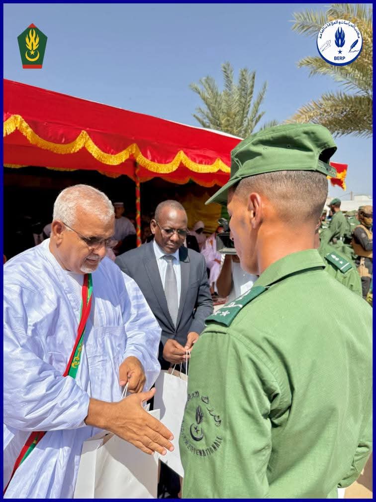 أشرف معالي وزير الدفاع وشؤون المتقاعدين واولاد الشهداء السيد حنن ولد سيدي رفقة الفريق أحمد محمود ولد الطايع قائد أركان الدرك الوطني، صباح اليوم في مدينة روصو، على حفل تخرج دفعتين جديدتين من مدرسة الدرك الوطني.