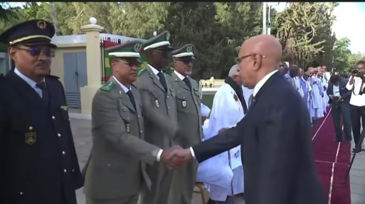 وشح رئيس الجمهورية السيد محمد ولد الشيخ الغزواني المدير العام للجمارك الموريتانية العقيد خالد السالك أعلي بوسام ضابط من نظام الاستحقاق الوطني.