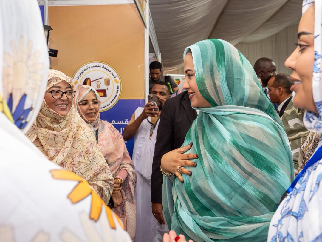 أشرفت السيدة الأولى الدكتورة مريم محمد فاضل الداه، صباح اليوم، على فعاليات معرض ذهب موريتانيا، حيث قامت بجولة شاملة داخل أروقة المعرض، واطّلعت على مختلف الأجنحة التي تضم أعمالا لعدد من المصمّمات والحرفيين والفاعلين الشباب في مجال صياغة الذهب والحرف الفنية المرتبطة به.