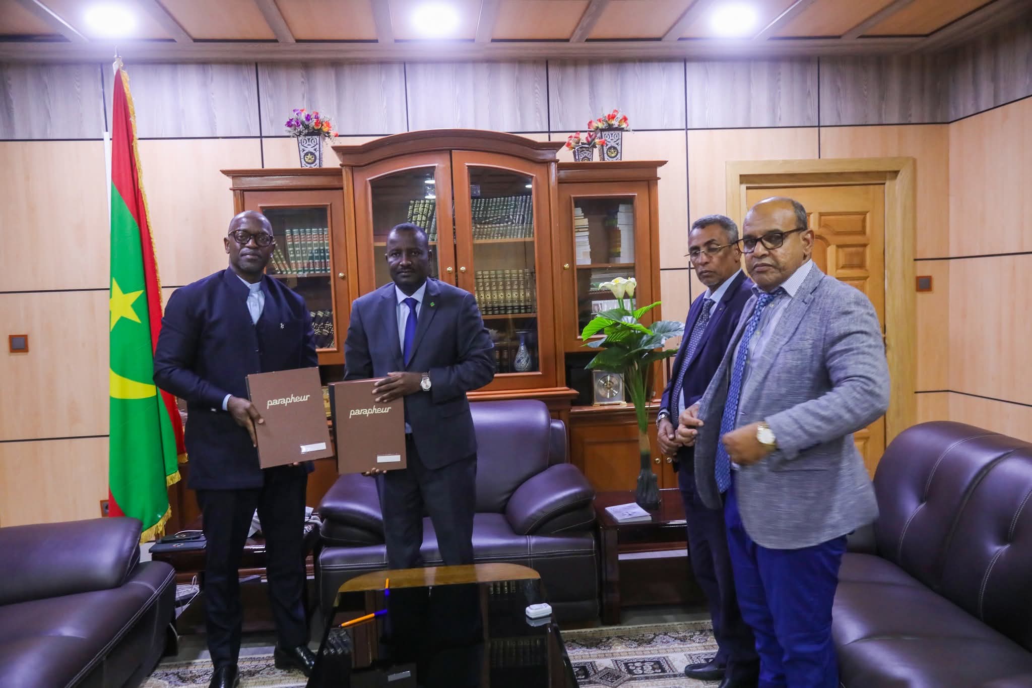 وقع معالي وزير العدل السيد محمد ولد اسويدات اليوم الجمعة، في مكتبه، مع السيد منصور أنجاي الممثل المقيم لبرنامج الأمم المتحدة الإنمائي (PNUD) على اتفاقية تخص المرحلة الثانية من برنامج عصرنة العدالة والولوج إليها الذي يموله (PNUD).