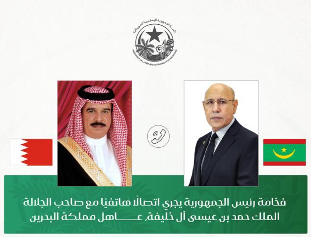 أجرى فخامة رئيس الجمهورية السيد محمد ولد الشيخ الغزواني، اتصالا هاتفيا بصاحب الجلالة الملك حمد بن عيسى آل خليفة، عاهل مملكة البحرين الشقيقة، وذلك على إثر ما تعرضت له المملكة من هجمات مؤخرًا.