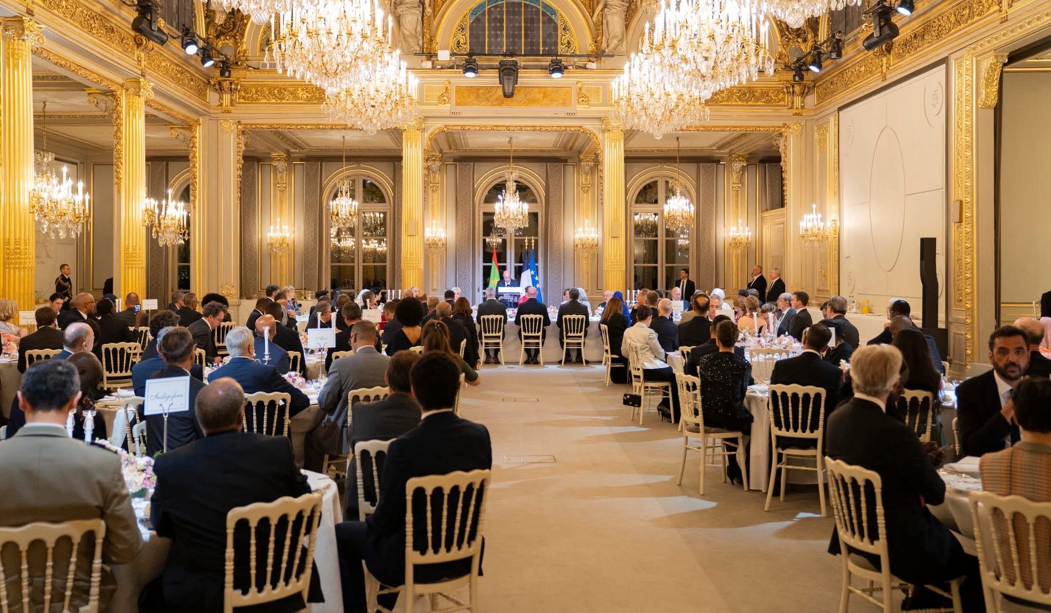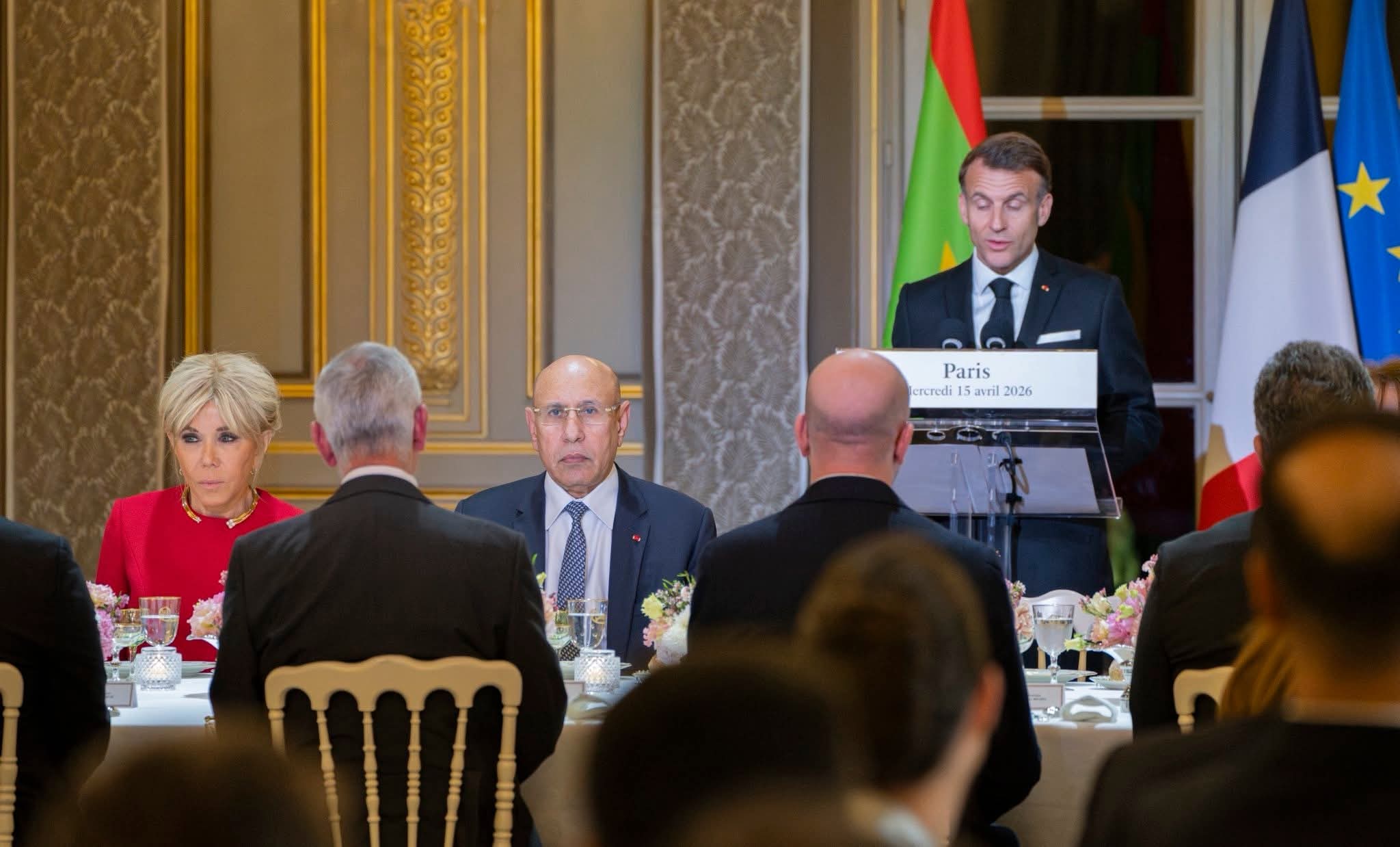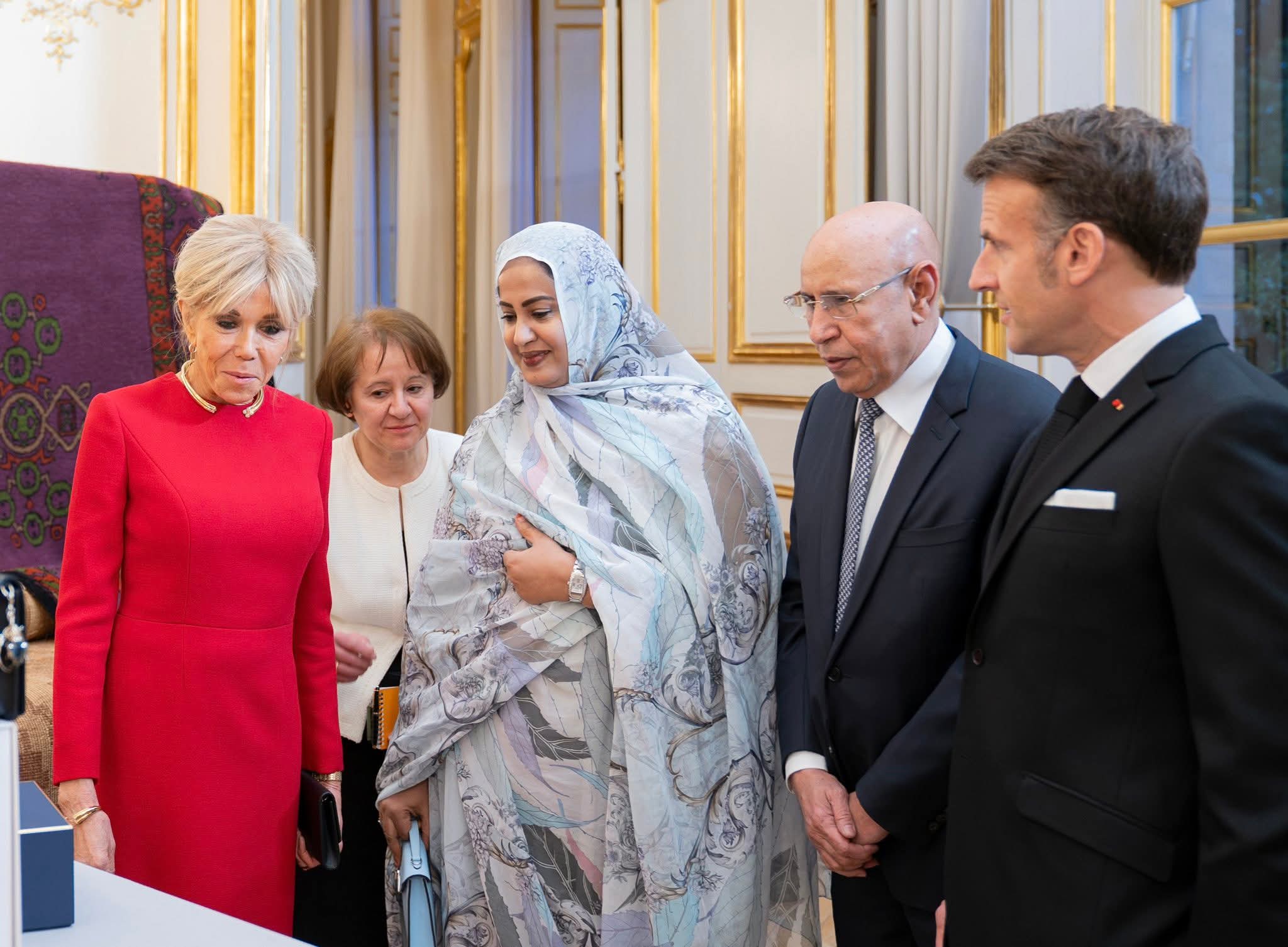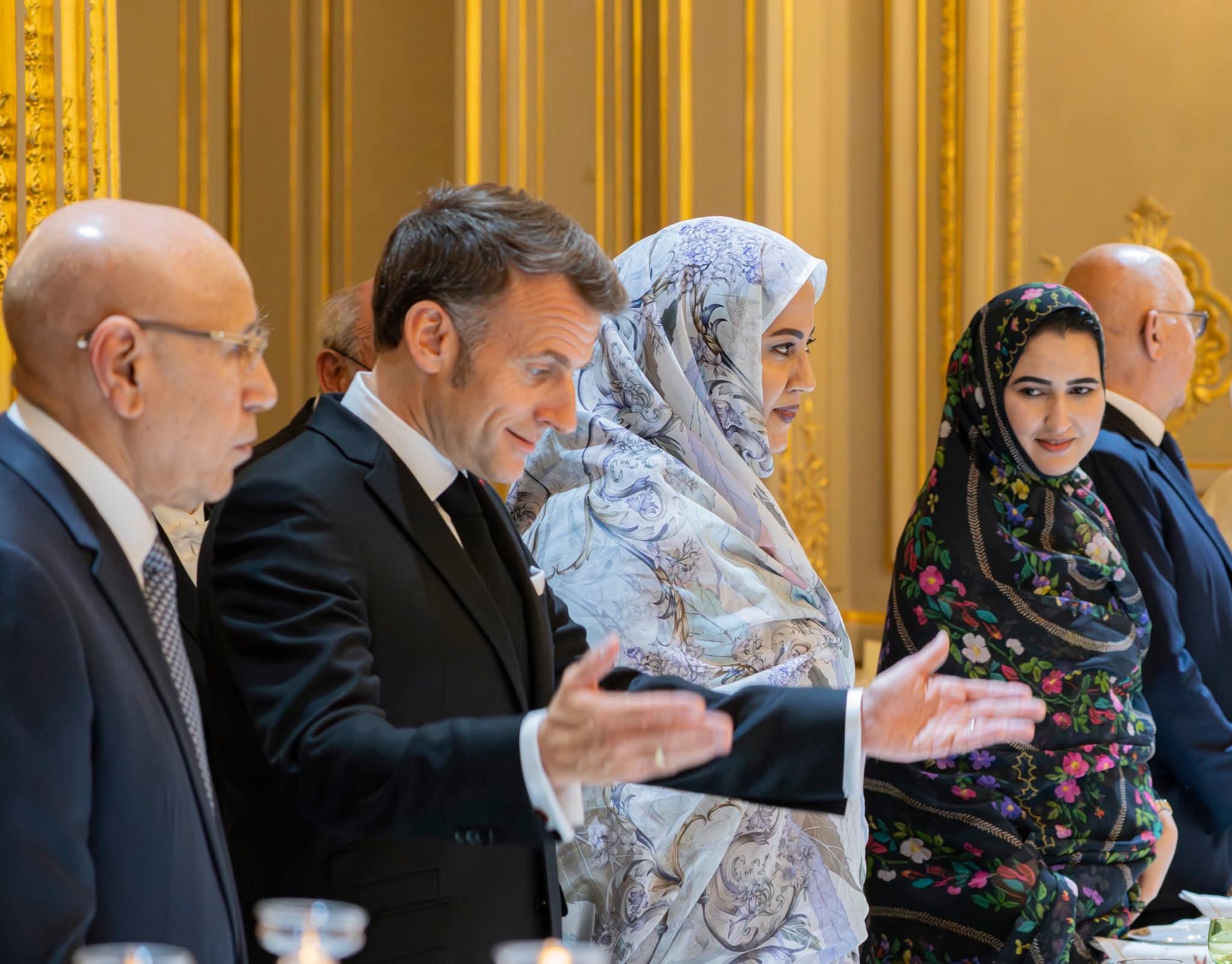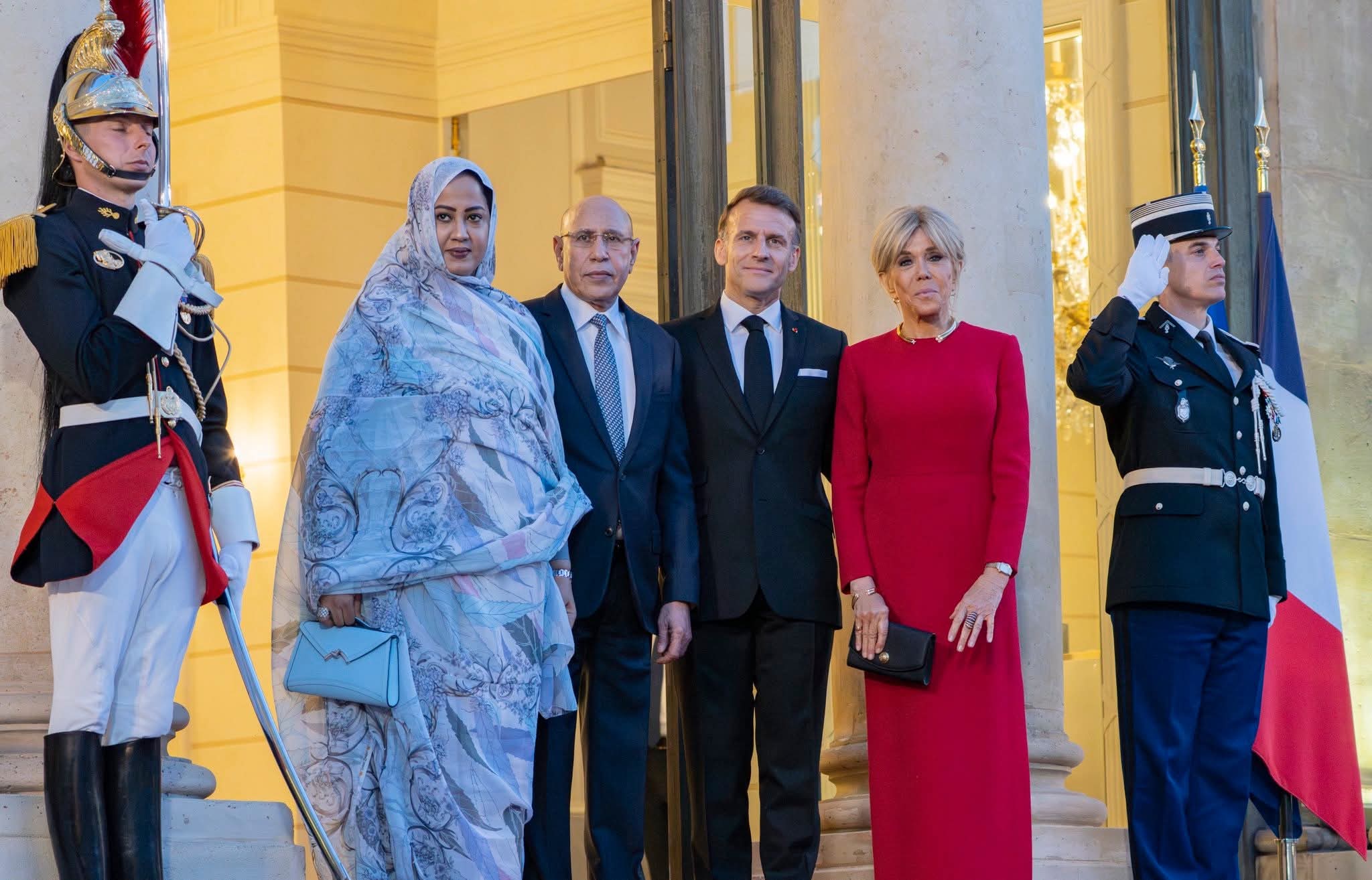 حضر فخامة رئيس الجمهورية السيد محمد ولد الشيخ الغزواني إلى جانب السيدة الأولى الدكتورة مريم محمد فاضل الداه؛ مأدبة عشاء رسمية أقامها على شرفهما في قصر الإليزيه، الرئيس الفرنسي السيد إيمانويل ماكرون، والسيدة الأولى بريجيت ماكرون.