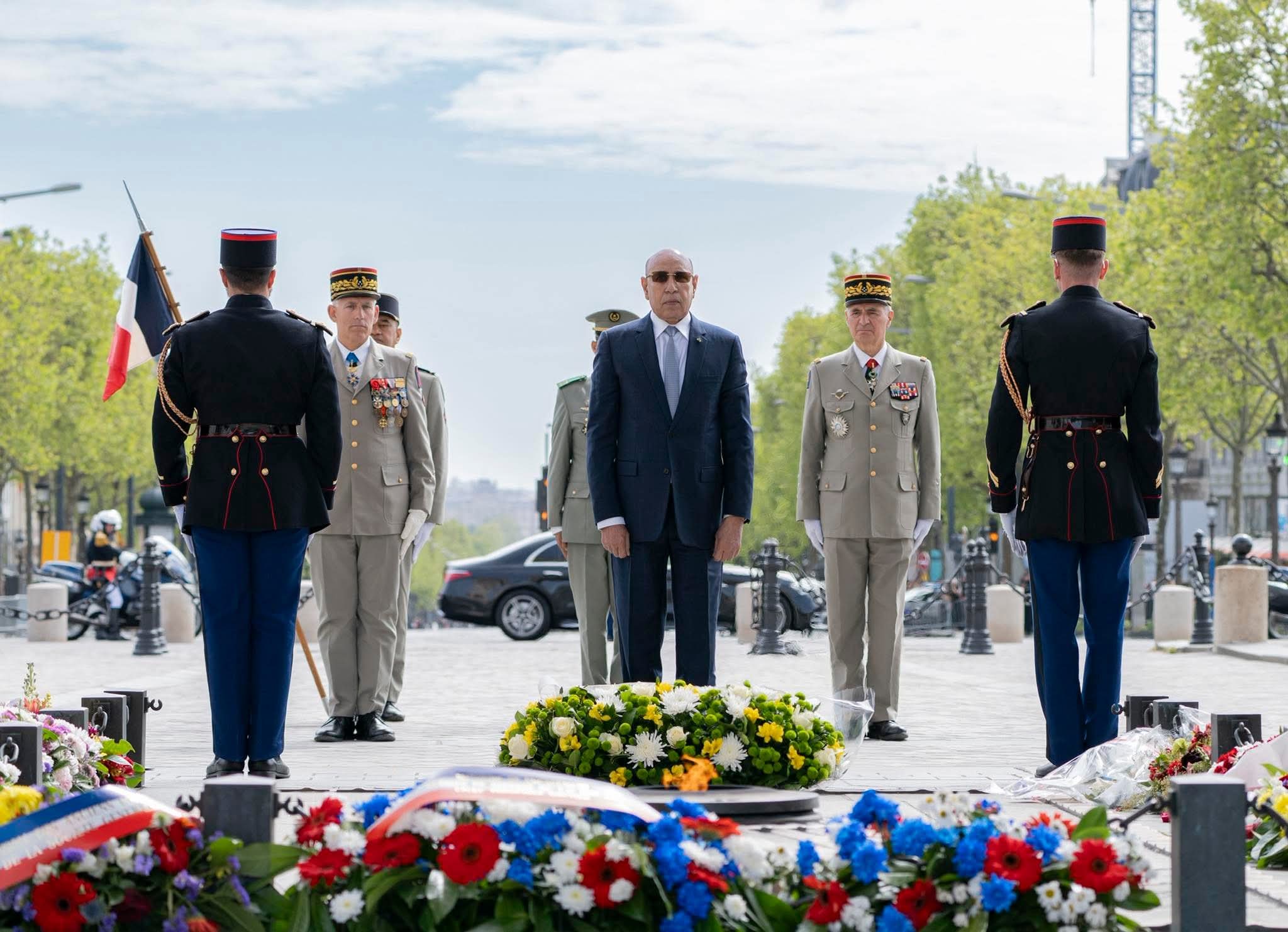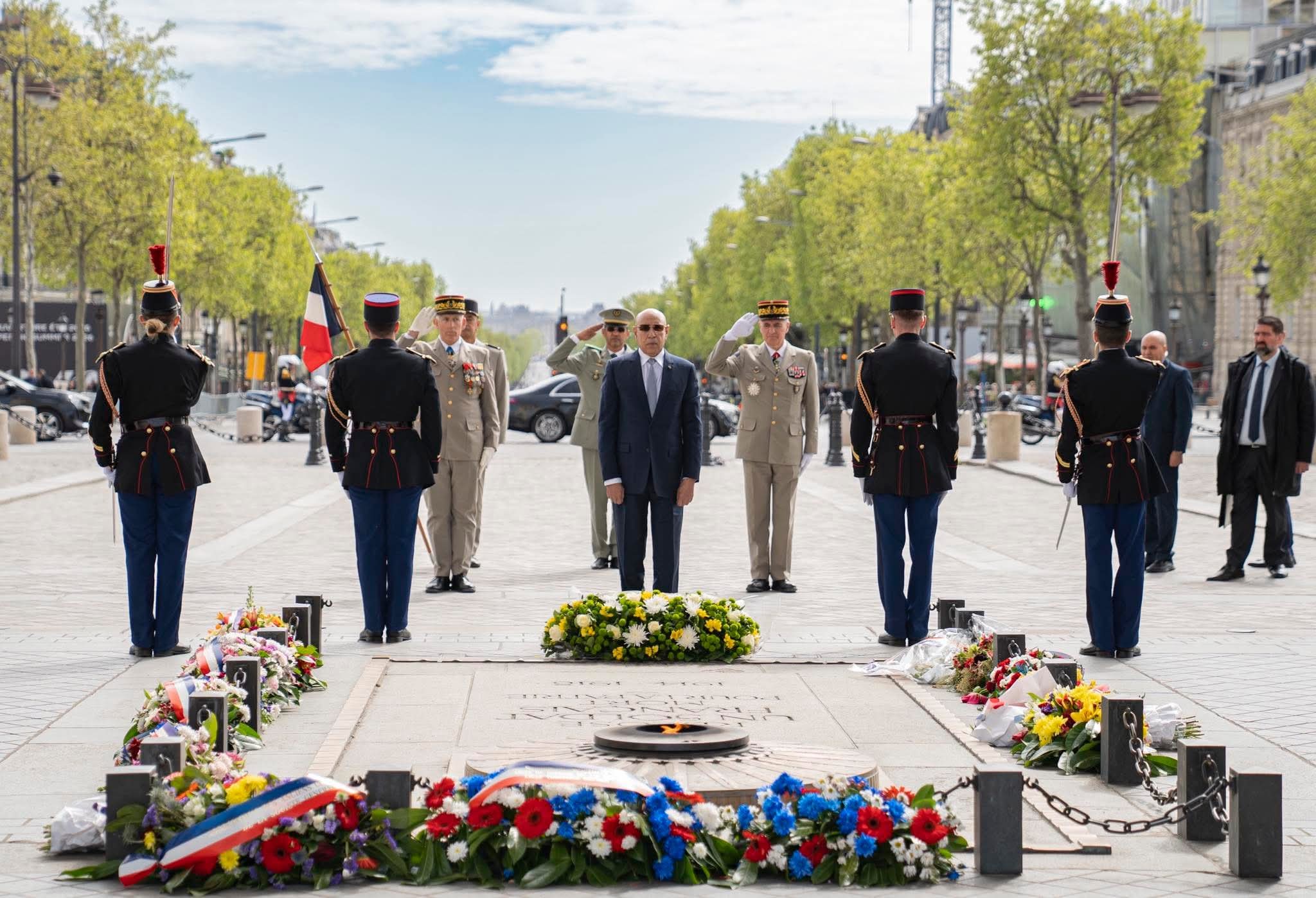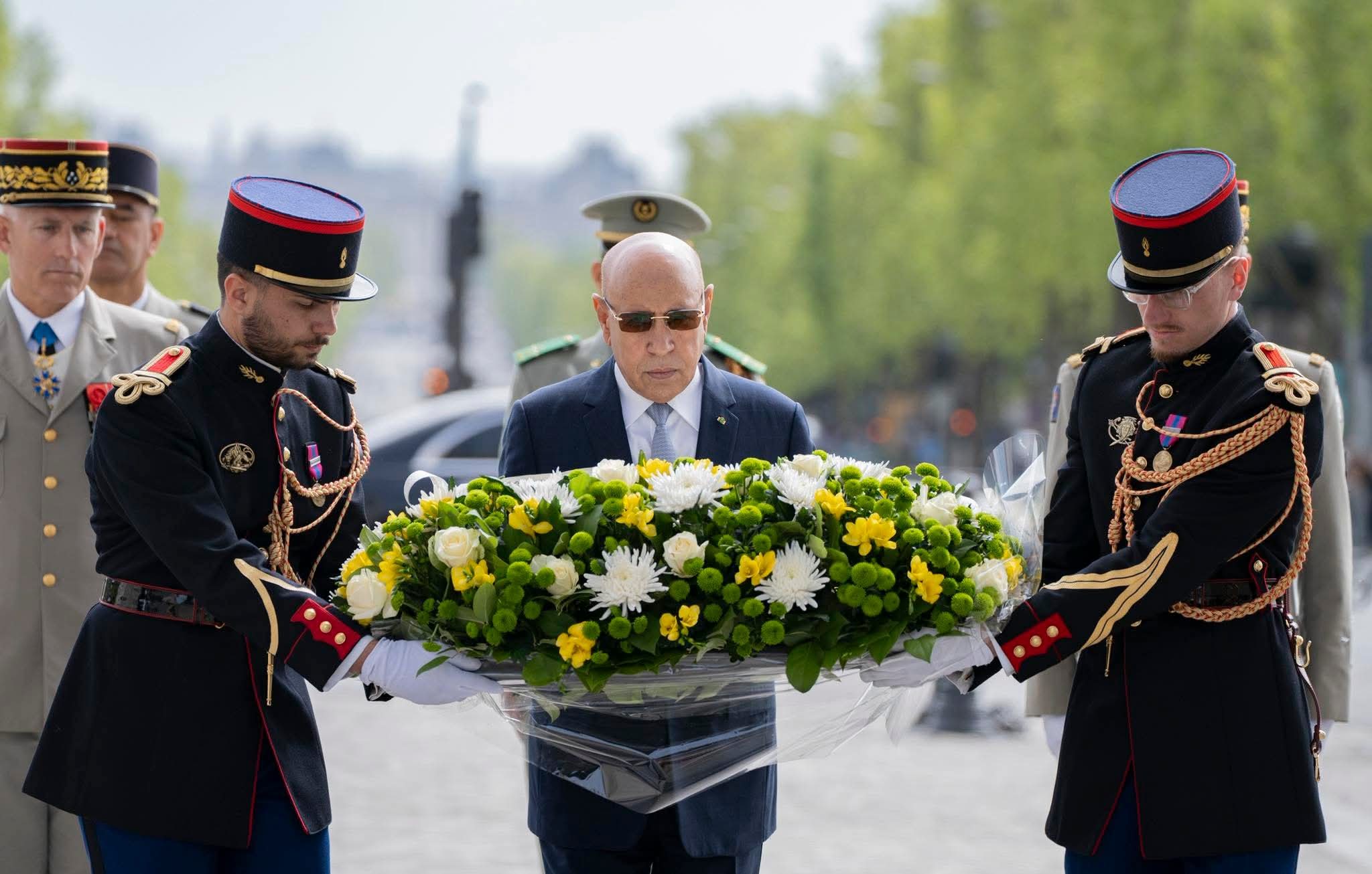 وضع فخامة رئيس الجمهورية السيد محمد ولد الشيخ الغزواني، إكليلًا من الزهور على قبر الجندي المجهول بقوس النصر في باريس.