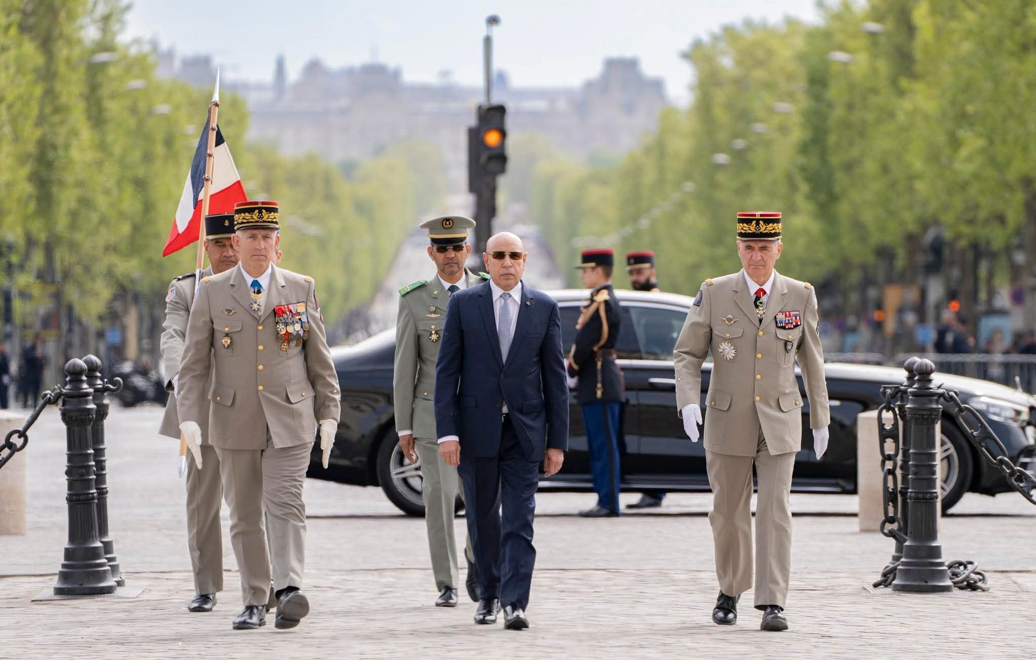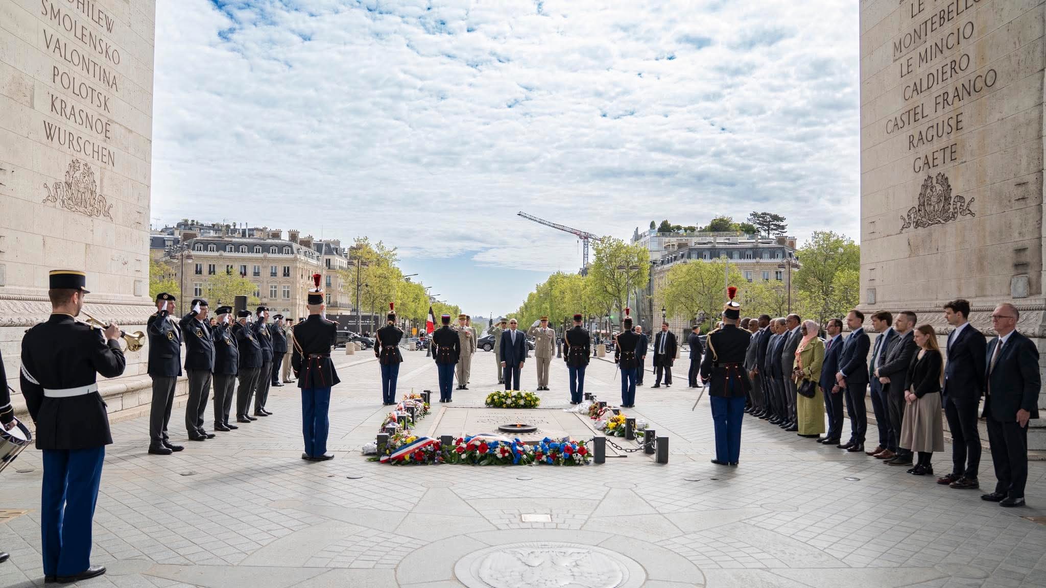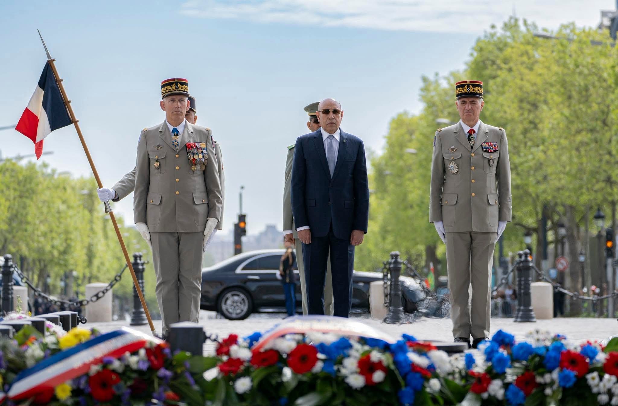 وضع فخامة رئيس الجمهورية السيد محمد ولد الشيخ الغزواني، إكليلًا من الزهور على قبر الجندي المجهول بقوس النصر في باريس.